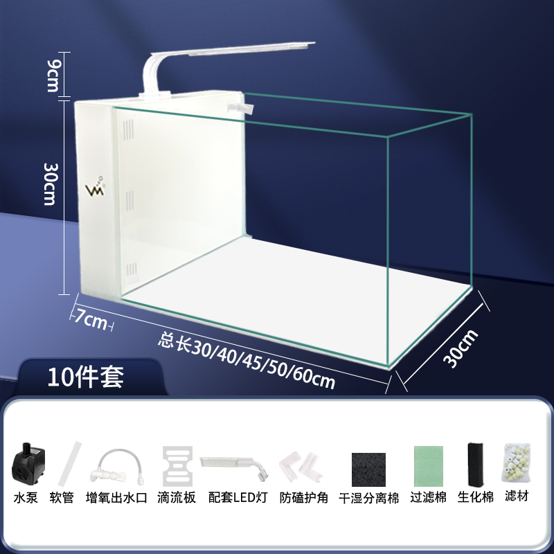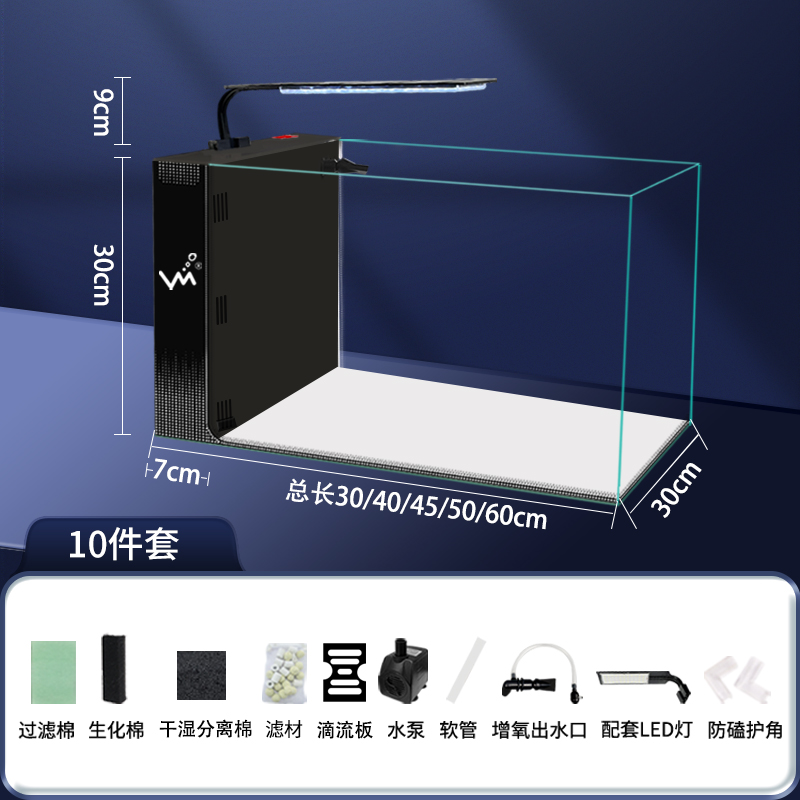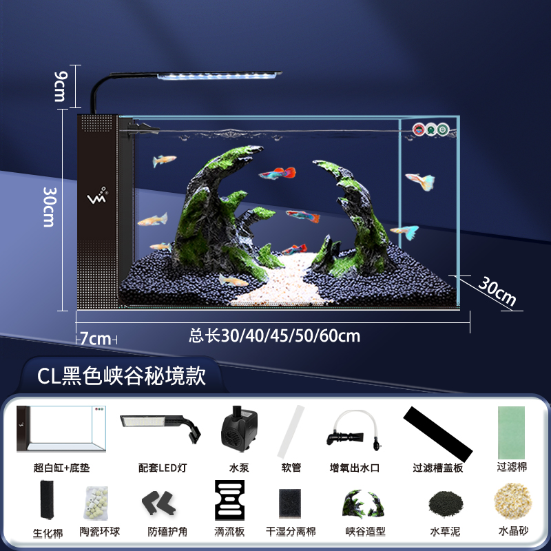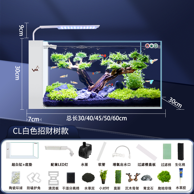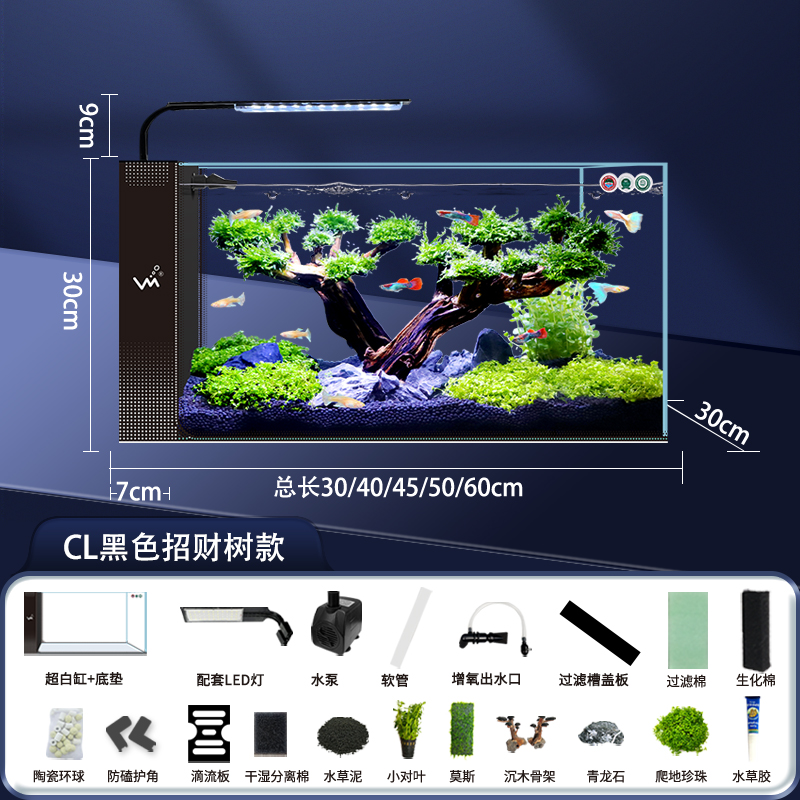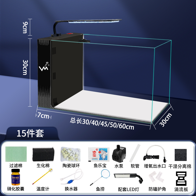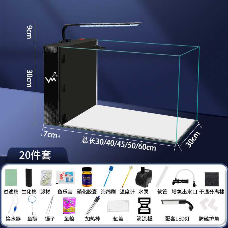 새로운 측면 필터 거실 수조 데스크탑 가족 작은 초백색 유리 자체 순환 생태 게으른 수족관 금붕어