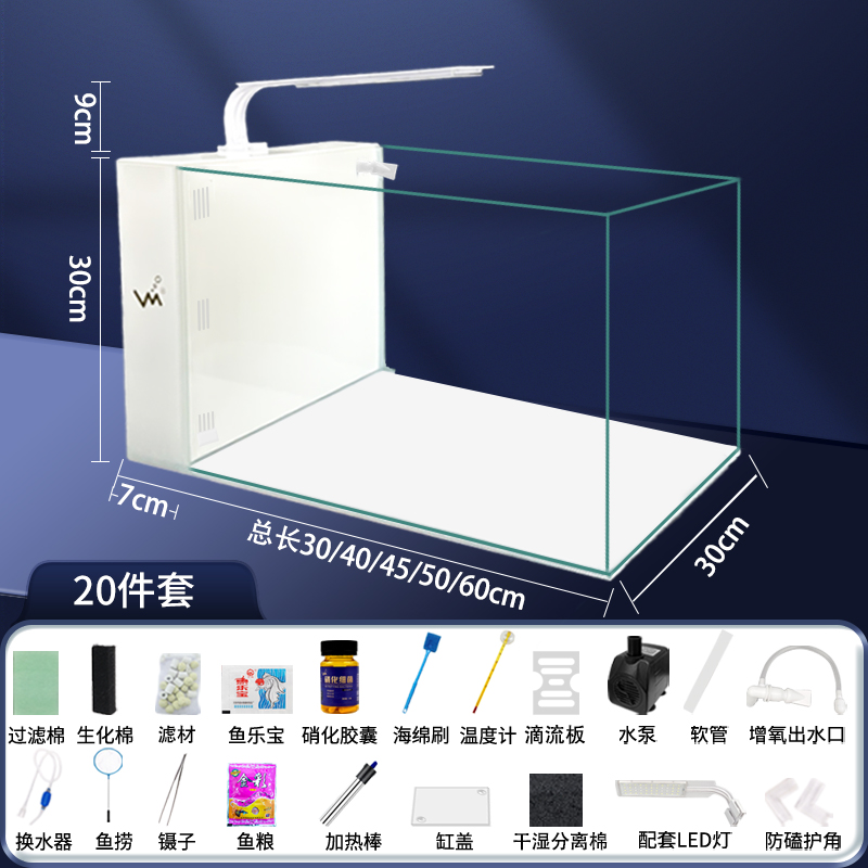 새로운 측면 필터 거실 수조 데스크탑 가족 작은 초백색 유리 자체 순환 생태 게으른 수족관 금붕어스토어 가기