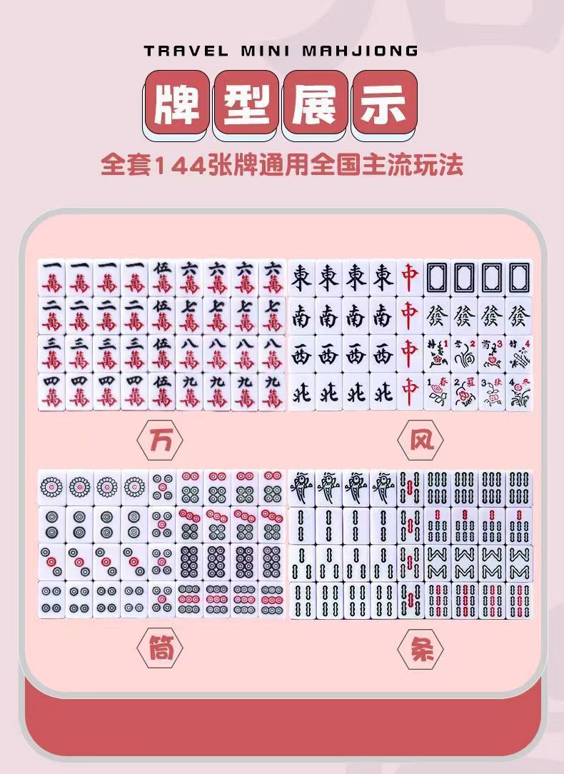 야외 여행, 캠핑 및 기숙사용 미니 마작 카드, 휴대용, 작고 귀여운 손으로 만든 마작