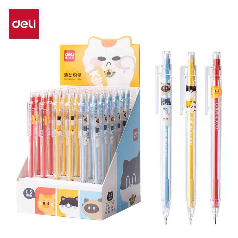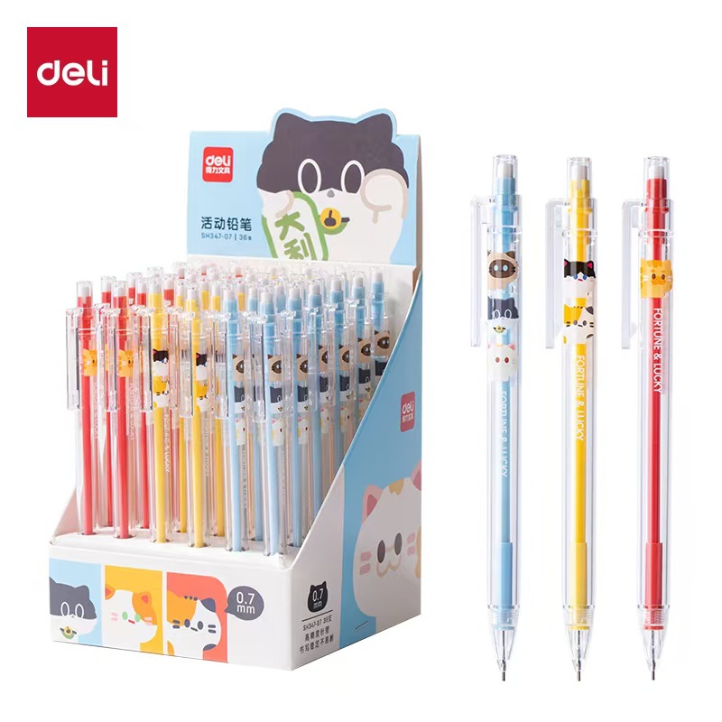Deli SH347 San Gu Meow Lu 플라스틱 샤프 펜슬 0.5mm/0.7mm 자동 연필 학생 쓰기 연필스토어 가기