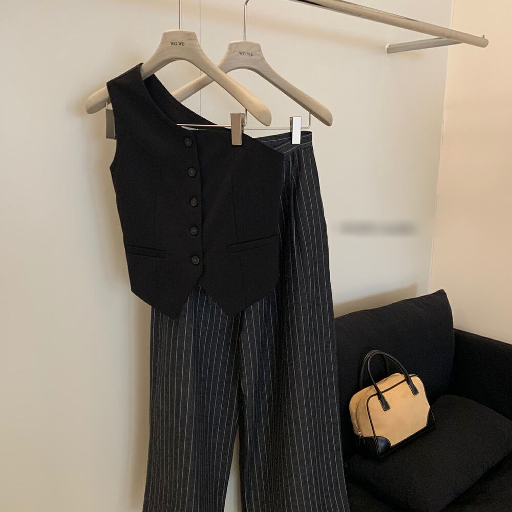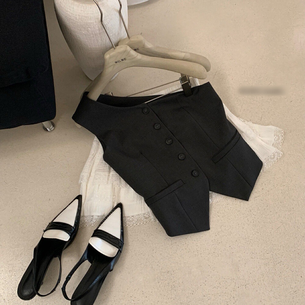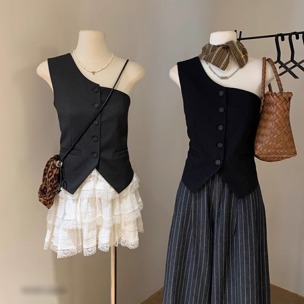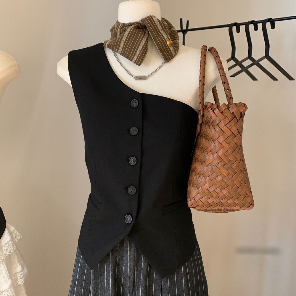 여름 패션 상의, 불규칙한 비대칭 어깨 민소매 정장 조끼, 핫걸 슬리밍 여성용 짧은 상의