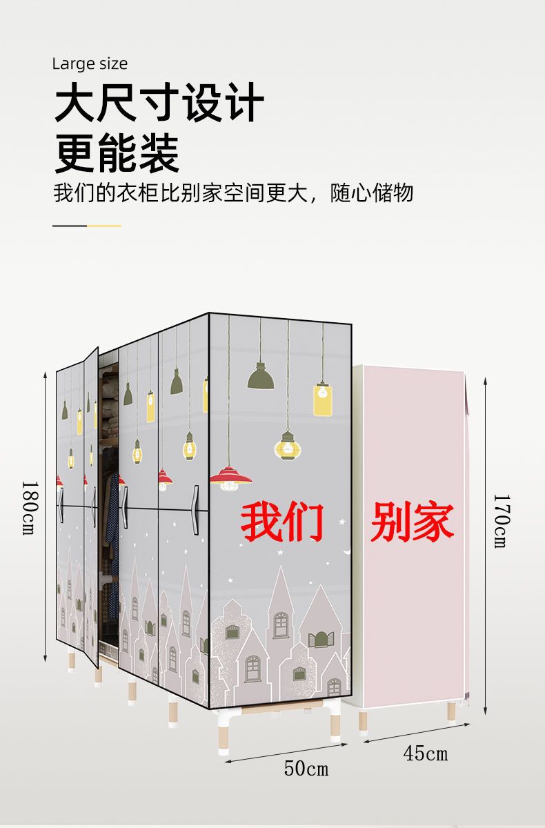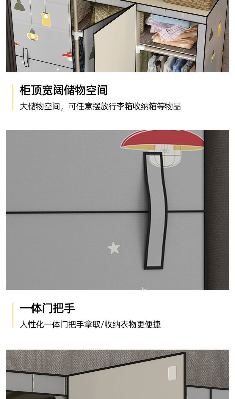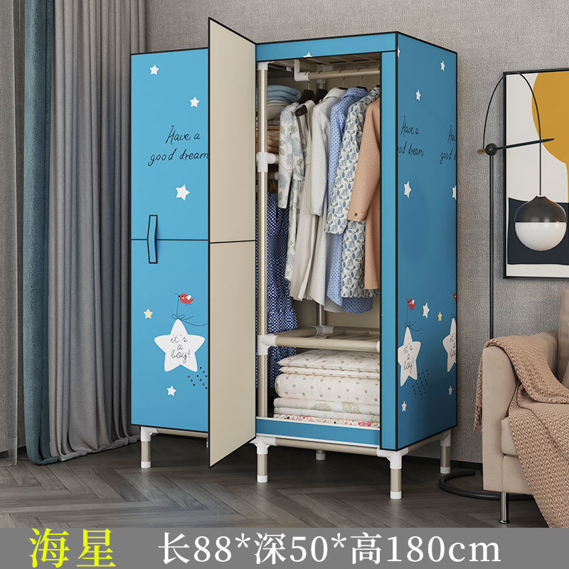 가정용 침실용 오픈 도어 간단한 천 옷장, 전체 강철 프레임, 두껍고 두꺼운 강철 파이프, 임대 주택, 튼튼하고 내구성이 뛰어난 옷장