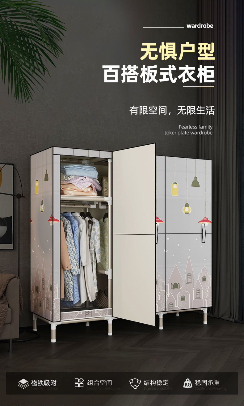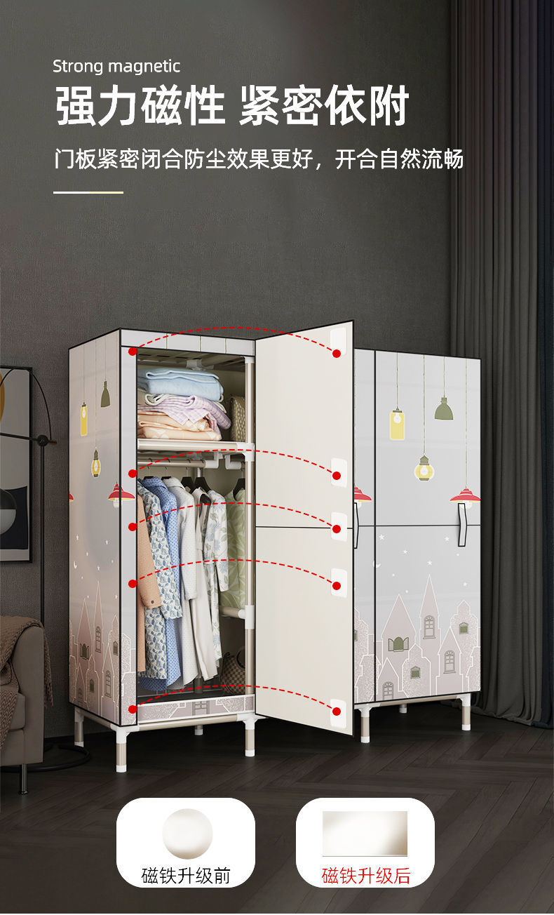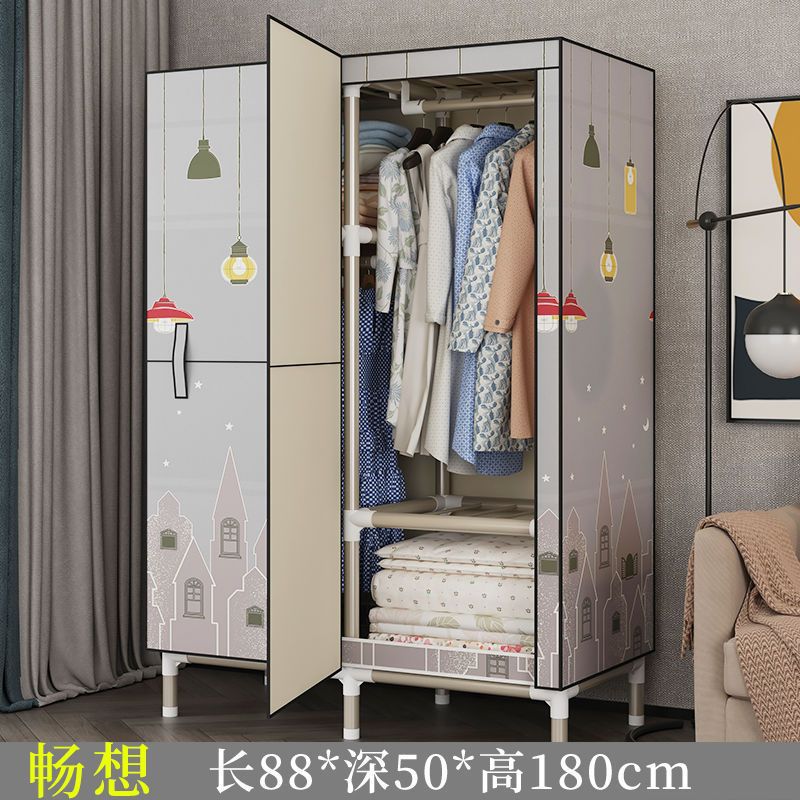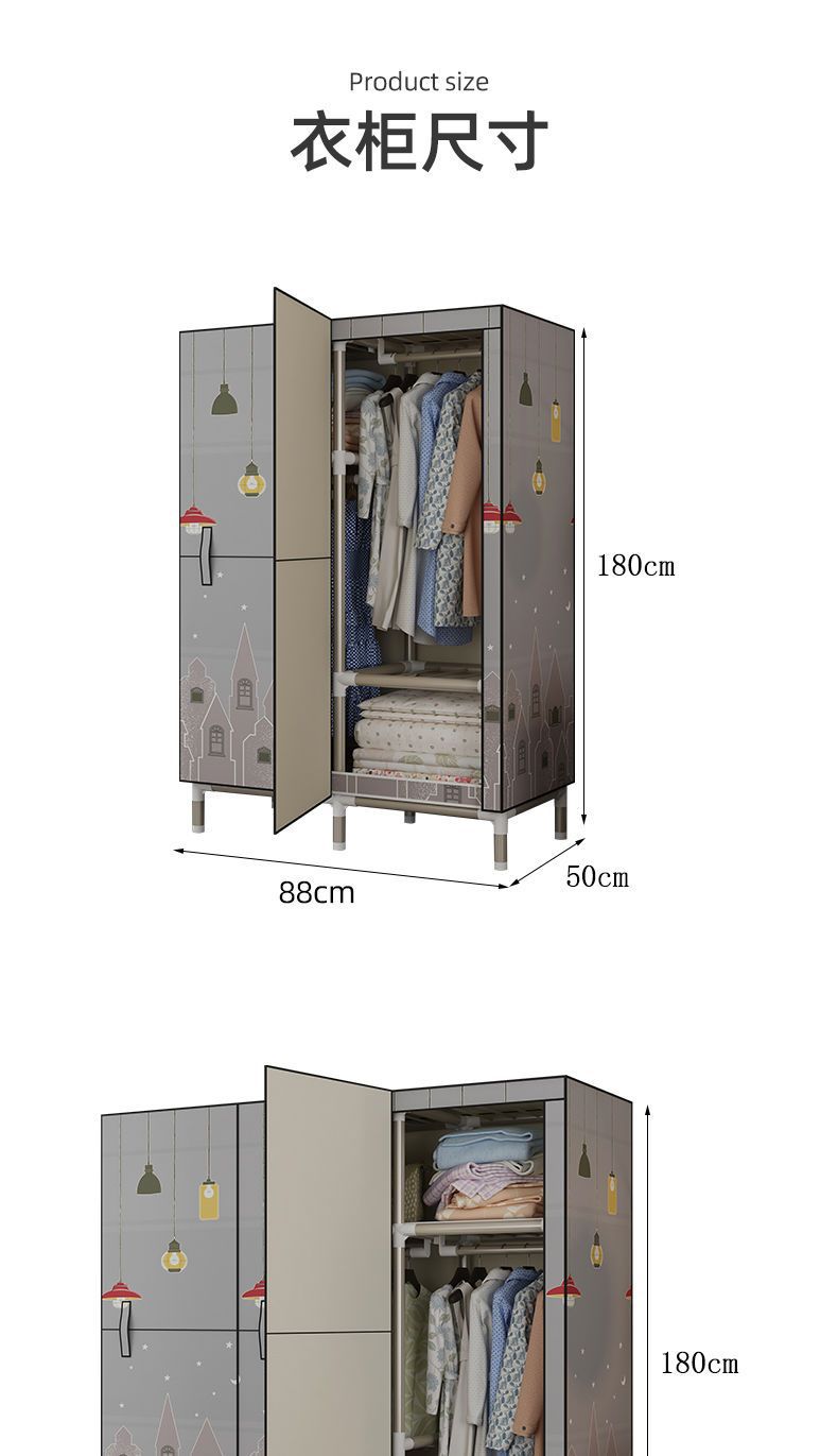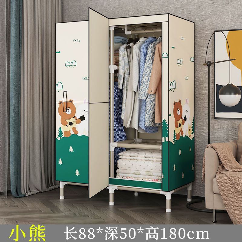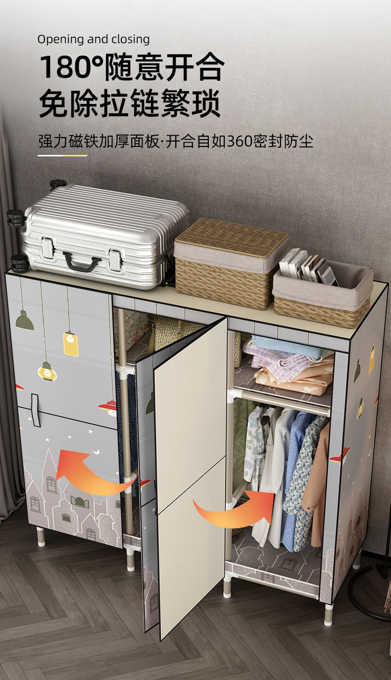 가정용 침실용 오픈 도어 간단한 천 옷장, 전체 강철 프레임, 두껍고 두꺼운 강철 파이프, 임대 주택, 튼튼하고 내구성이 뛰어난 옷장스토어 가기