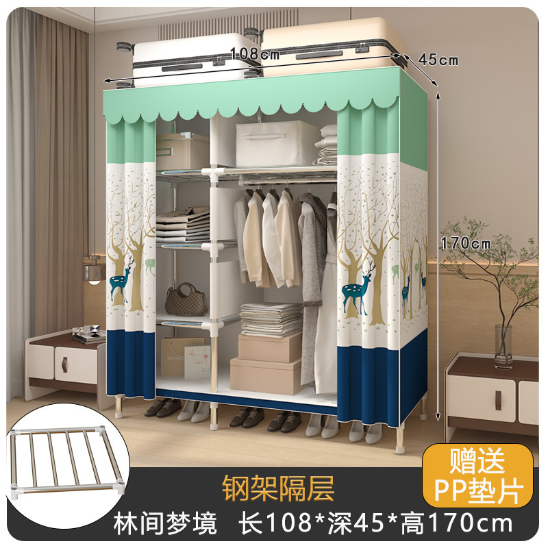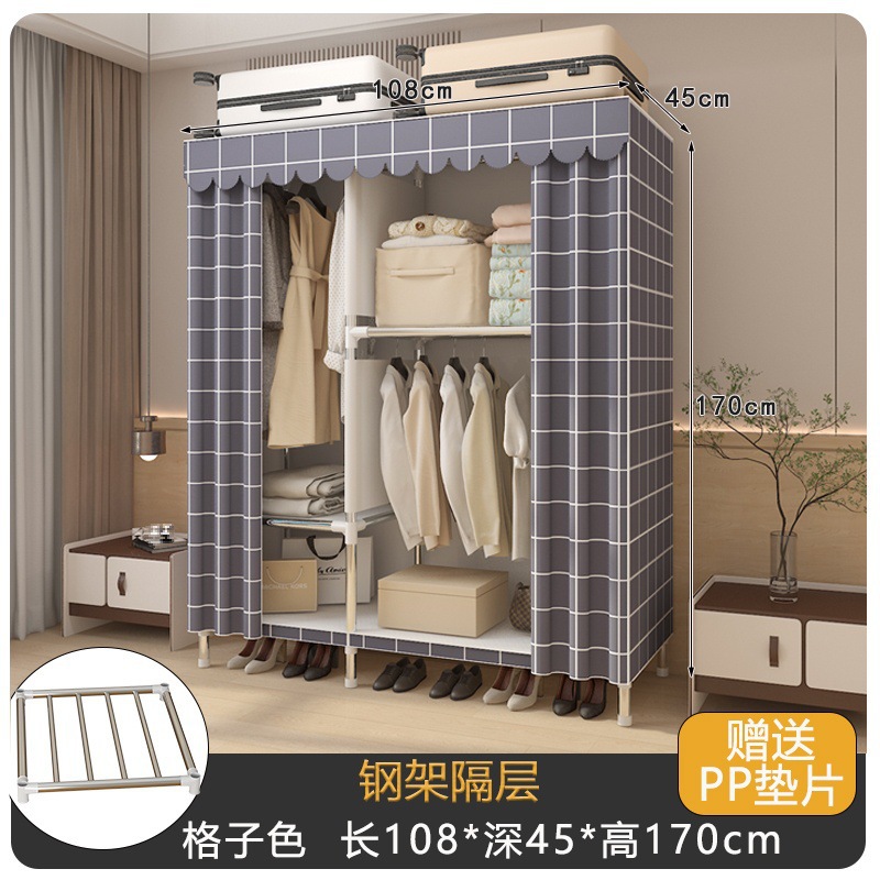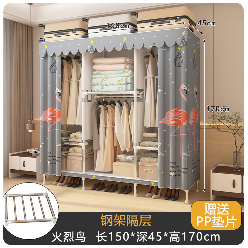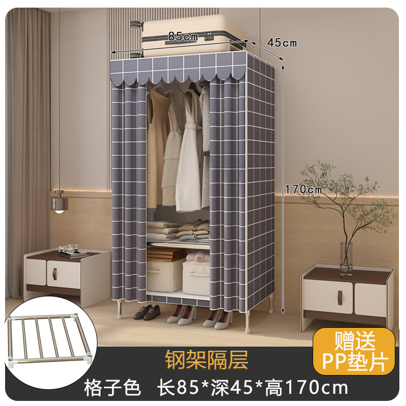 내구성이 뛰어난 강철 파이프, 튼튼한 천 옷장, 가정용 침실 조립, 전체 임대 주택 보관 캐비닛, 간단한 옷장 강철 프레임스토어 가기