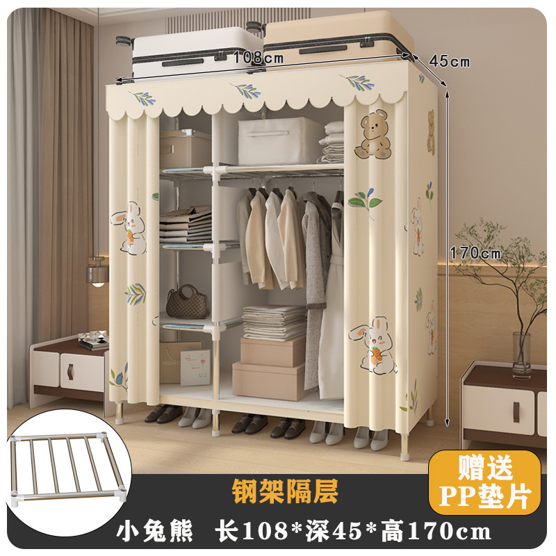 내구성이 뛰어난 강철 파이프, 튼튼한 천 옷장, 가정용 침실 조립, 전체 임대 주택 보관 캐비닛, 간단한 옷장 강철 프레임