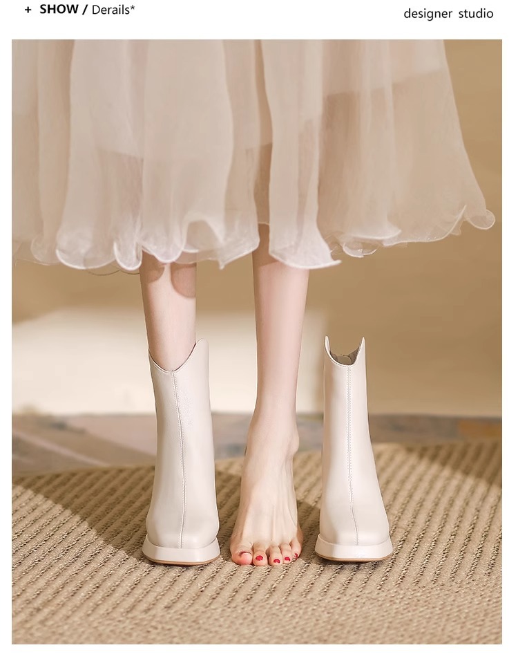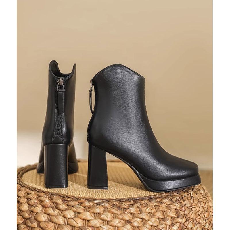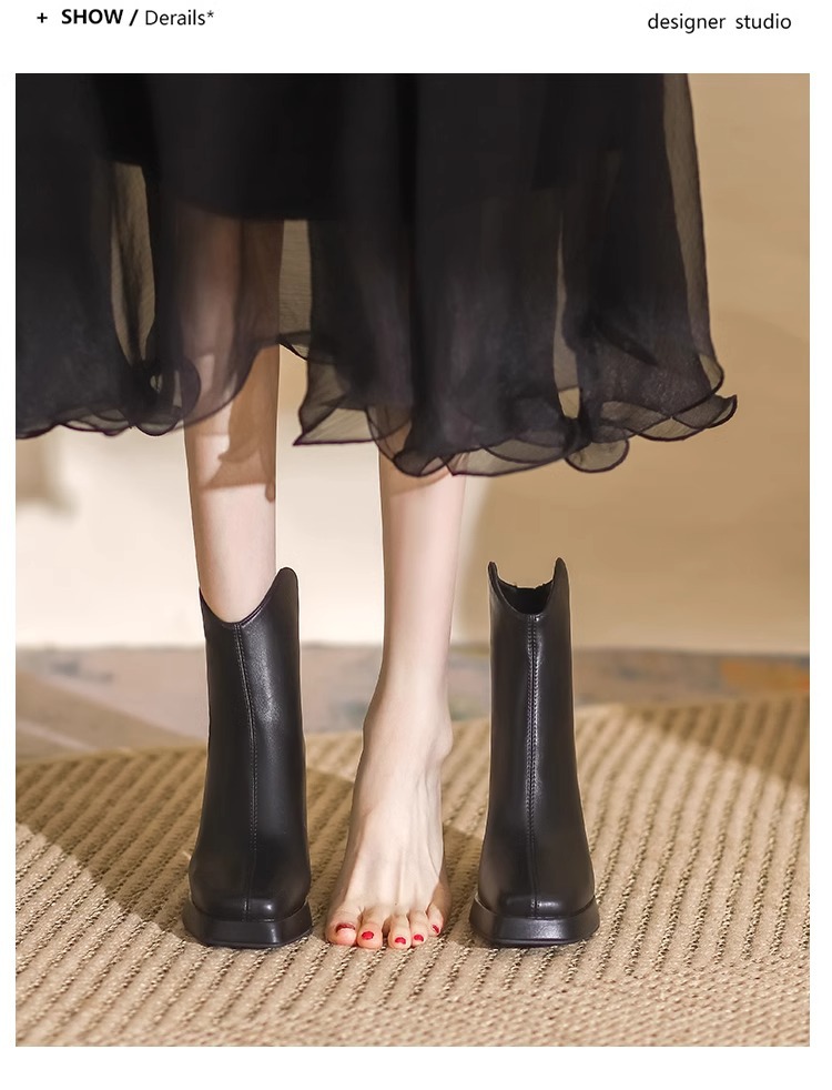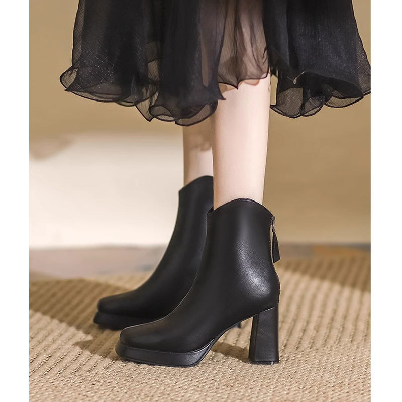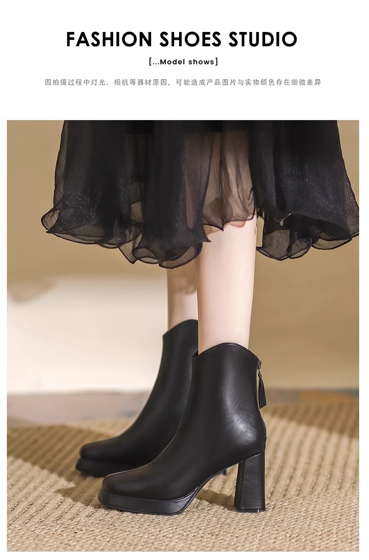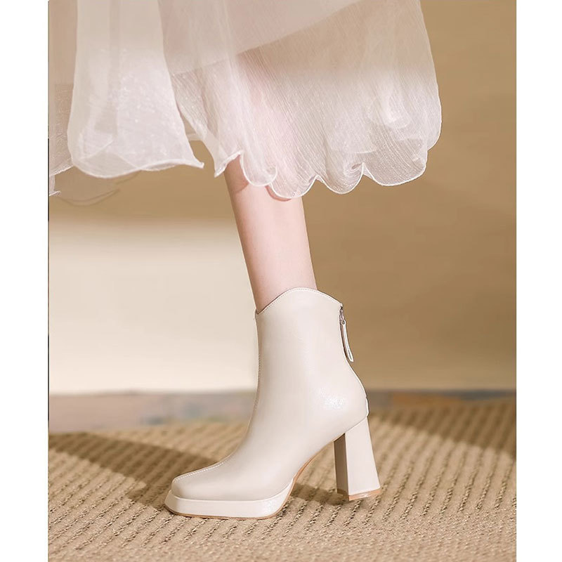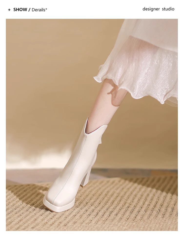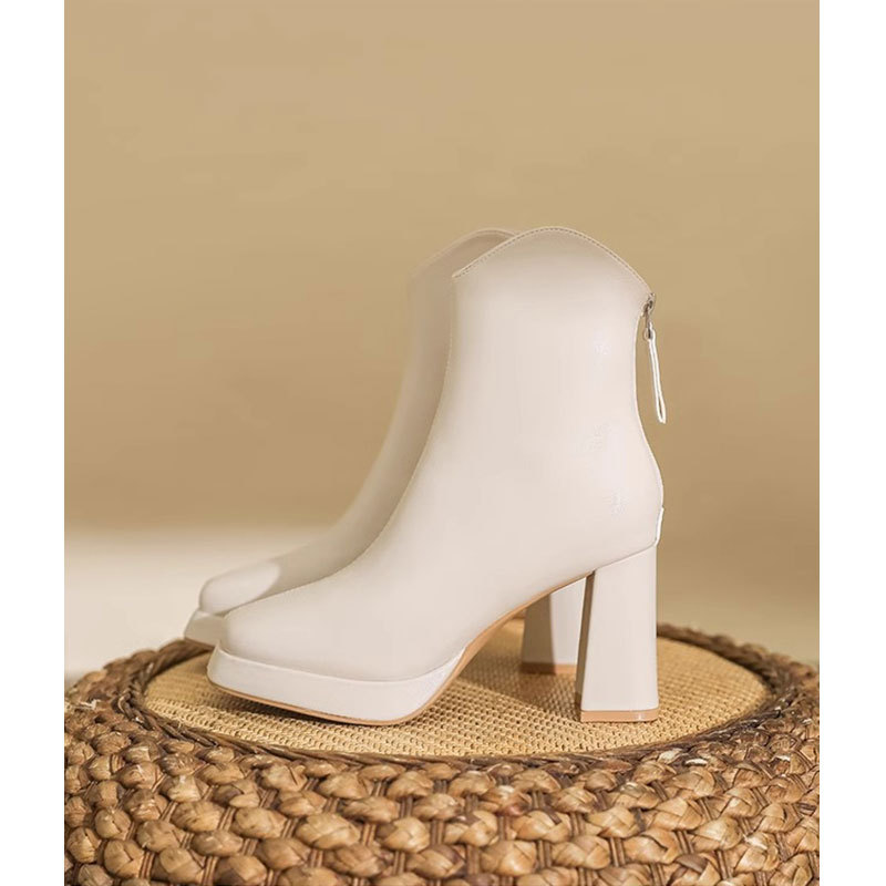 슬림부츠! 여성용 짧은 부츠 새로운 방수 플랫폼 하이힐 부츠 프렌치 스몰 누드 부츠 두꺼운 굽 마틴 부츠