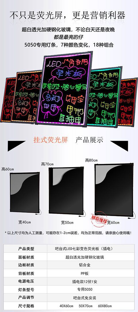 형광판 광고판 상점 야시장 노점 판촉판 발광 광고판 상점 디스플레이 칠판