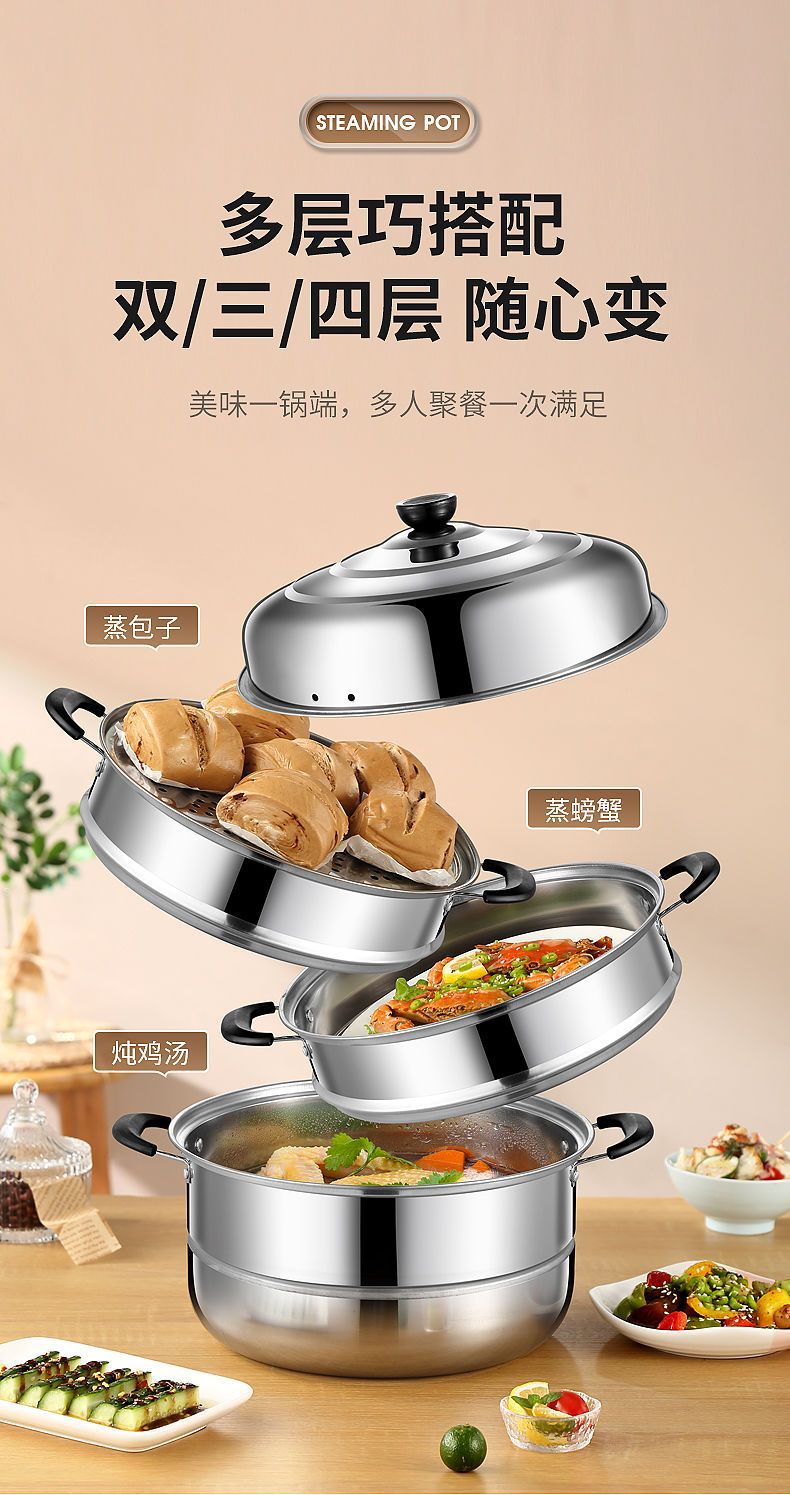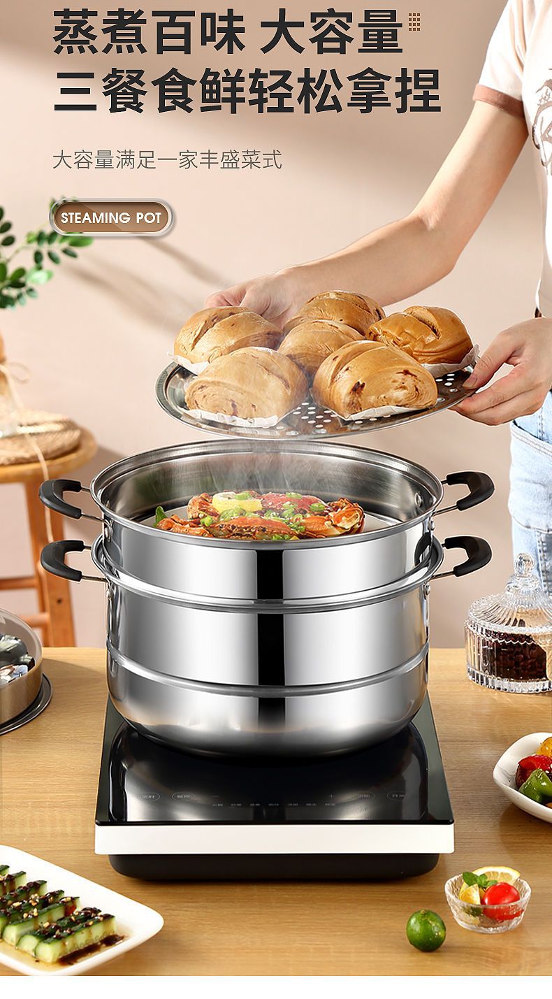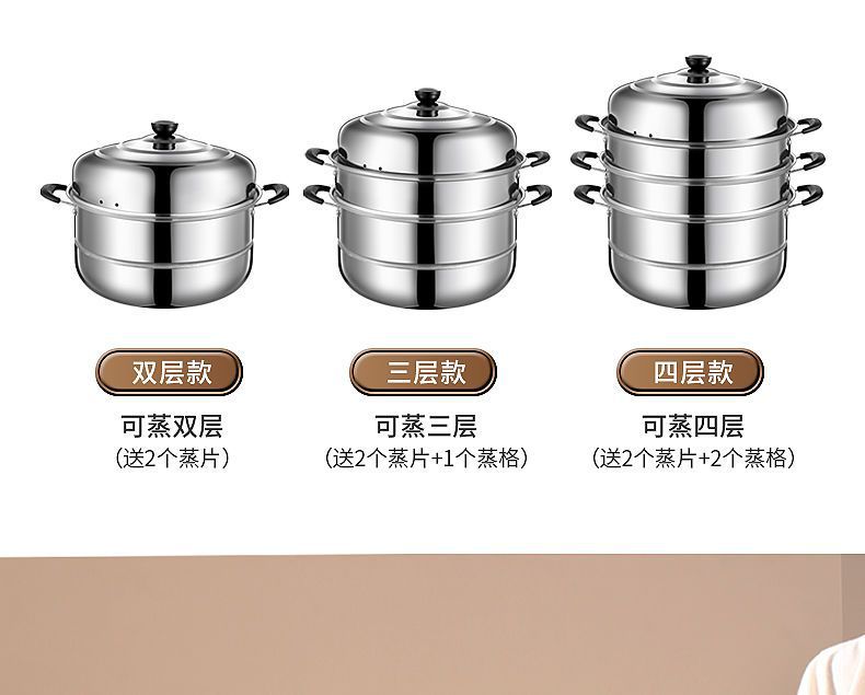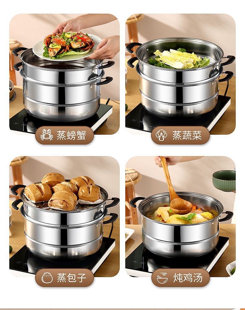 스테인레스 스틸 2층, 3층, 4층 두꺼운 찜통, 수프 냄비, 가스 인덕션 밥솥 - 대체품스토어 가기