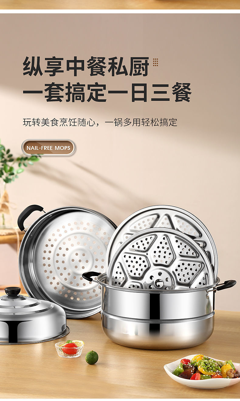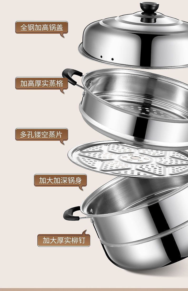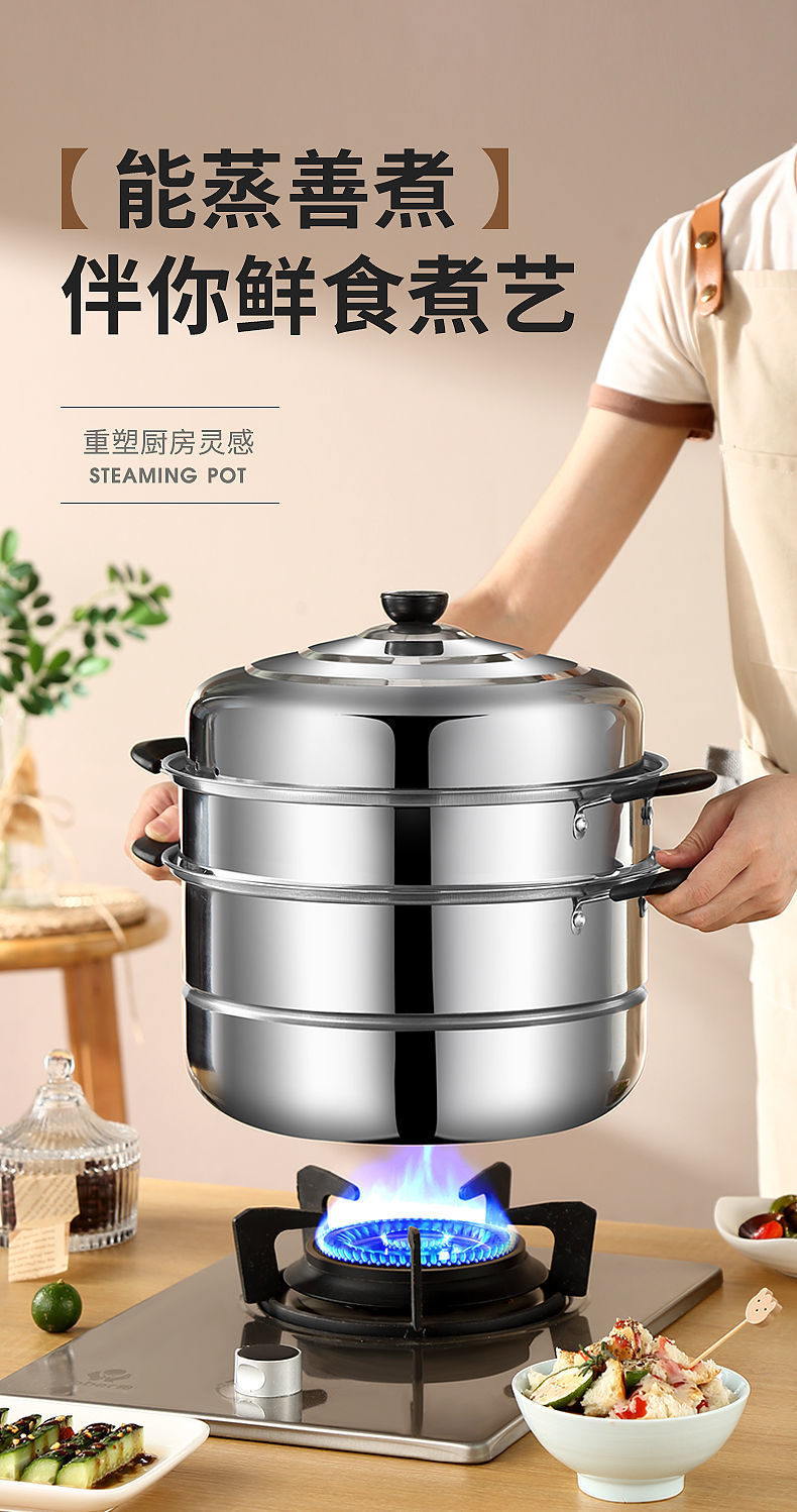 스테인레스 스틸 2층, 3층, 4층 두꺼운 찜통, 수프 냄비, 가스 인덕션 밥솥 - 대체품스토어 가기