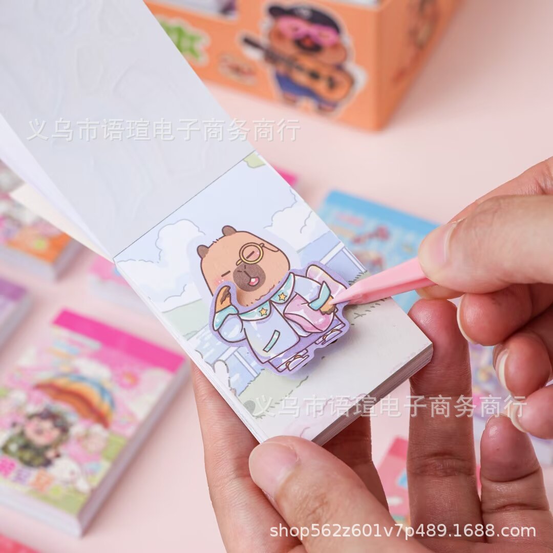 새로운 미니 만화 드레스 업 비니 북 색칠 드레스 업 투인원 소재 스티커 북 DIY 드레스 업 스티커스토어 가기