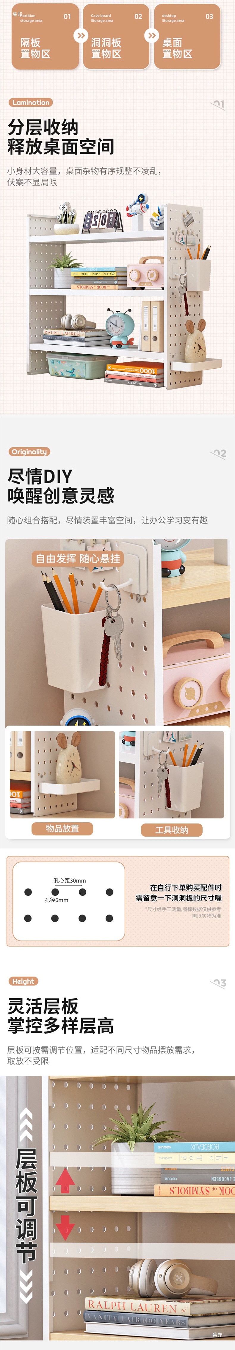 데스크탑 스토리지 랙 테이블 책장 구멍 보드 가정 학생 학습 책상 다층 스토리지 랙 디스플레이 랙스토어 가기