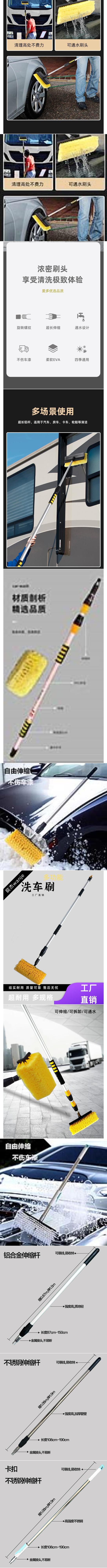 자동차 브러시, 텔레스코픽 막대, 두꺼운 스테인레스 스틸, 알루미늄 합금, 물을 통과할 수 있는 범용 텔레스코픽 막대, 세차 브러시 막대