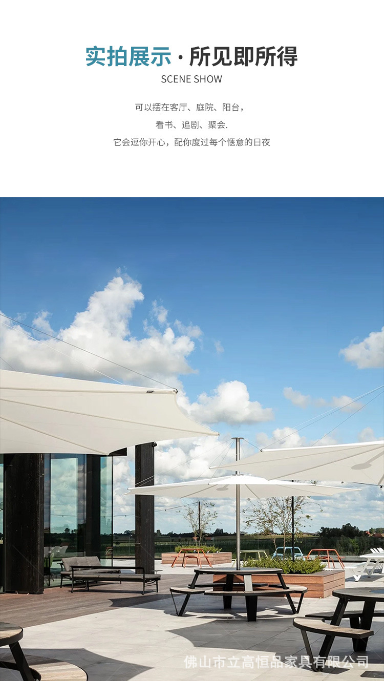 • 흰색 삼각형 일체형 테이블과 의자 [플라스틱 목재 소재 + 아연 도금 강철 프레임]