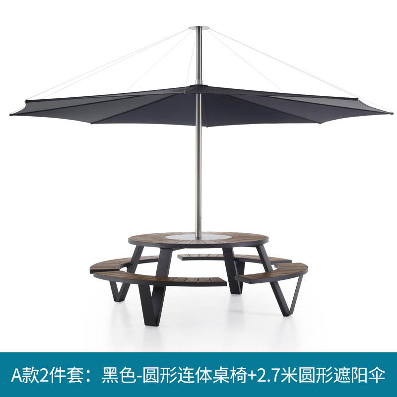 • 블랙 - 원형 일체형 테이블과 의자 [플라스틱 목재 소재 + 아연 도금 강철 프레임]