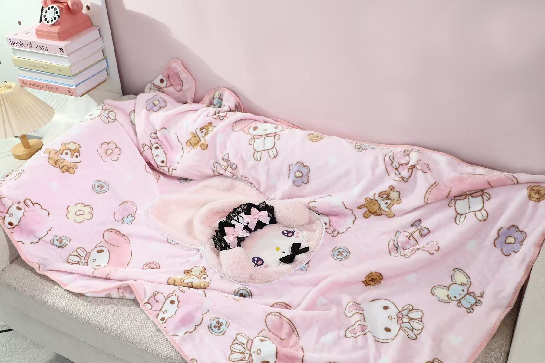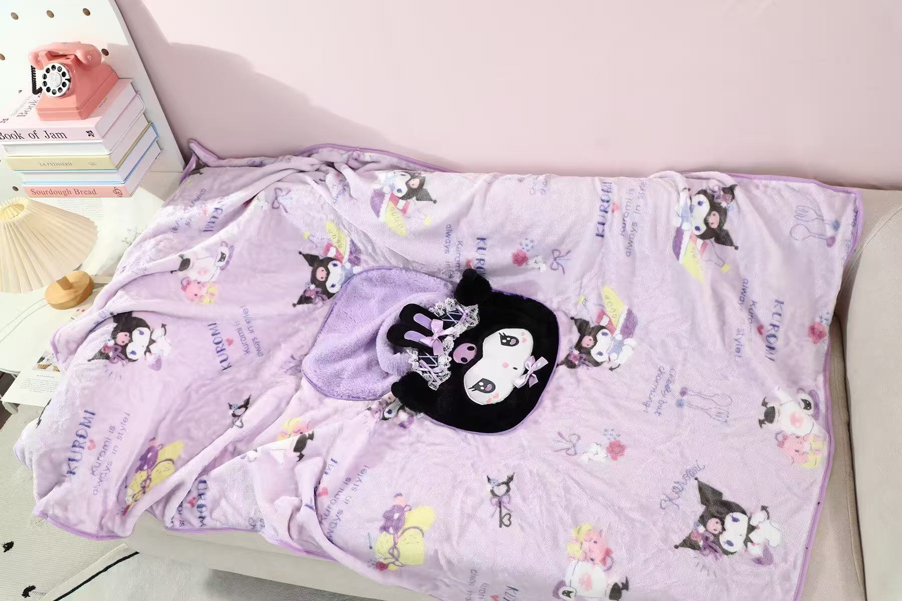 만화 귀여운 쿠로미 손 담요 가방 베개 에어컨 담요 이불 이중 목적 사무실 낮잠 담요
