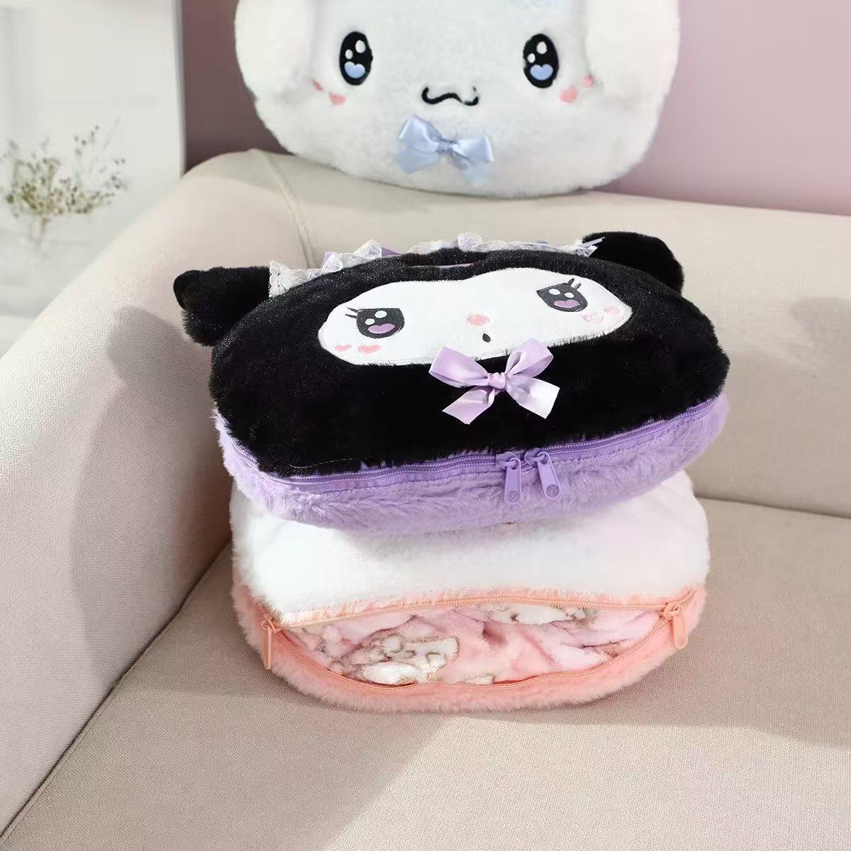 만화 귀여운 쿠로미 손 담요 가방 베개 에어컨 담요 이불 이중 목적 사무실 낮잠 담요스토어 가기