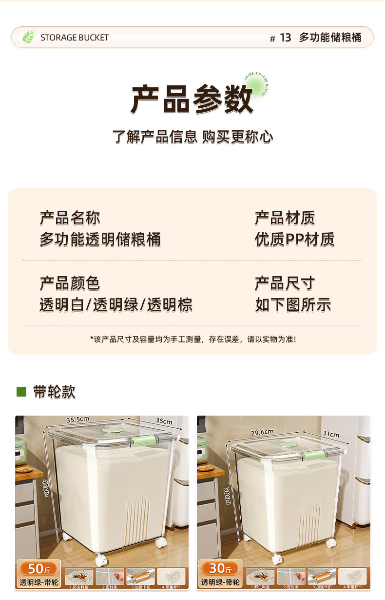 밀가루 저장 용기 밀봉 식품 등급 가정용 새로운 방충 및 방습 쌀 및 국수 특수 배럴 저장 용기 무료 배송스토어 가기