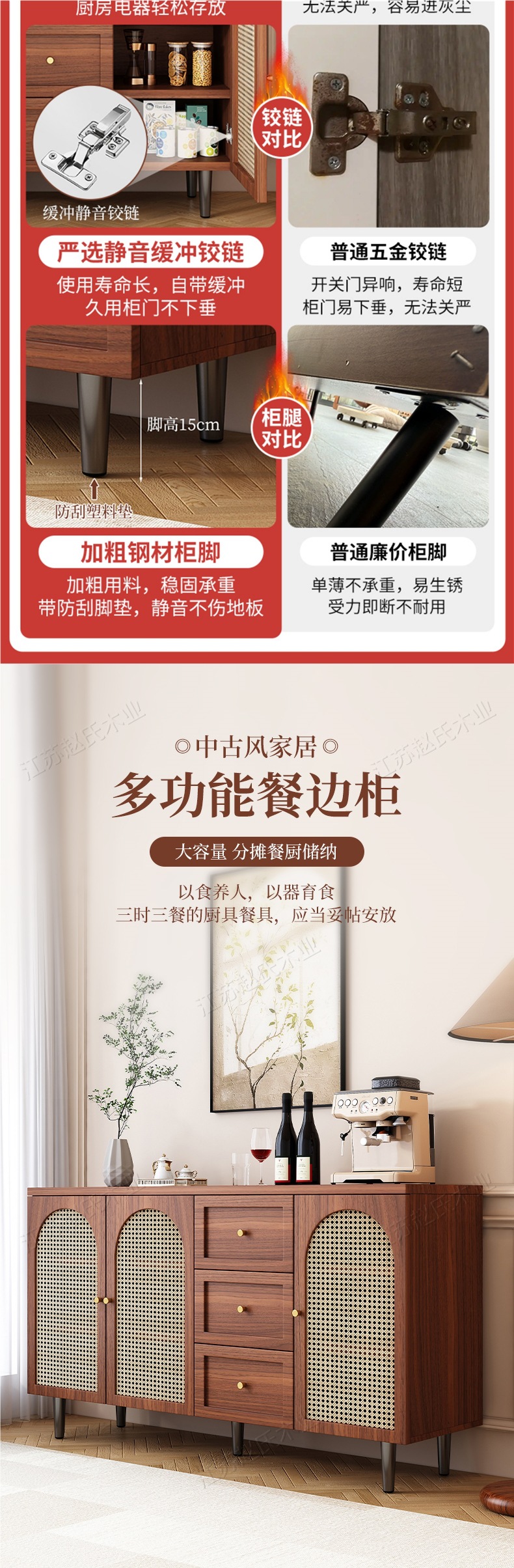 프렌치 사이드보드, 모던하고 심플한 등나무 수납장, 홈 레스토랑 차 수납장, 주방 수납장, 사이드보드