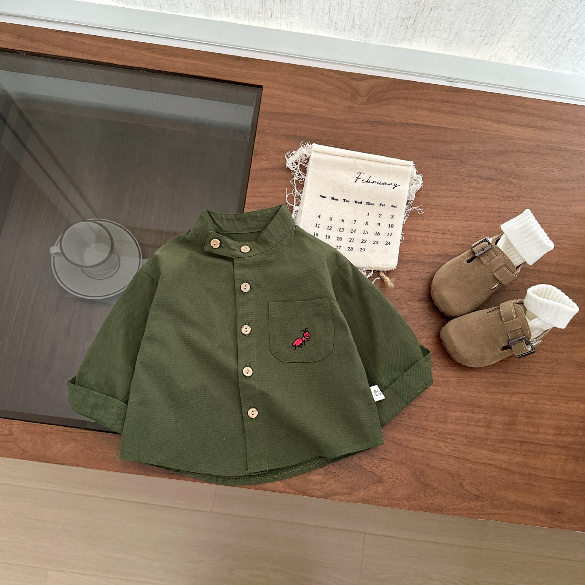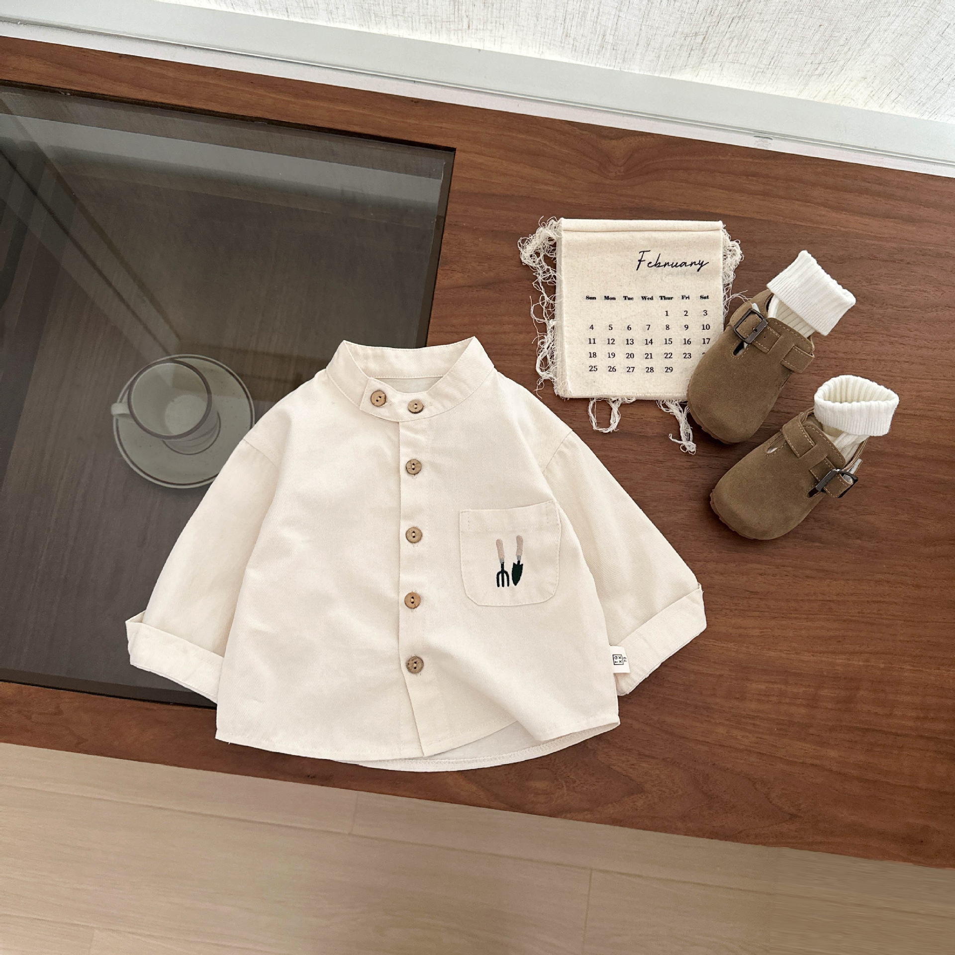 아기 셔츠 봄과 가을 새로운 스타일 아기 소년 유행 자수 스탠드 칼라 코튼 셔츠 한국 스타일 아기 캐주얼 탑