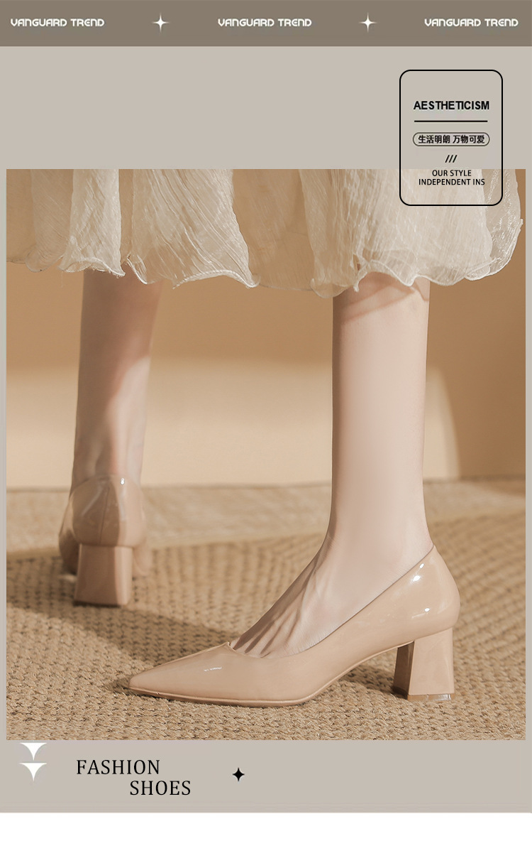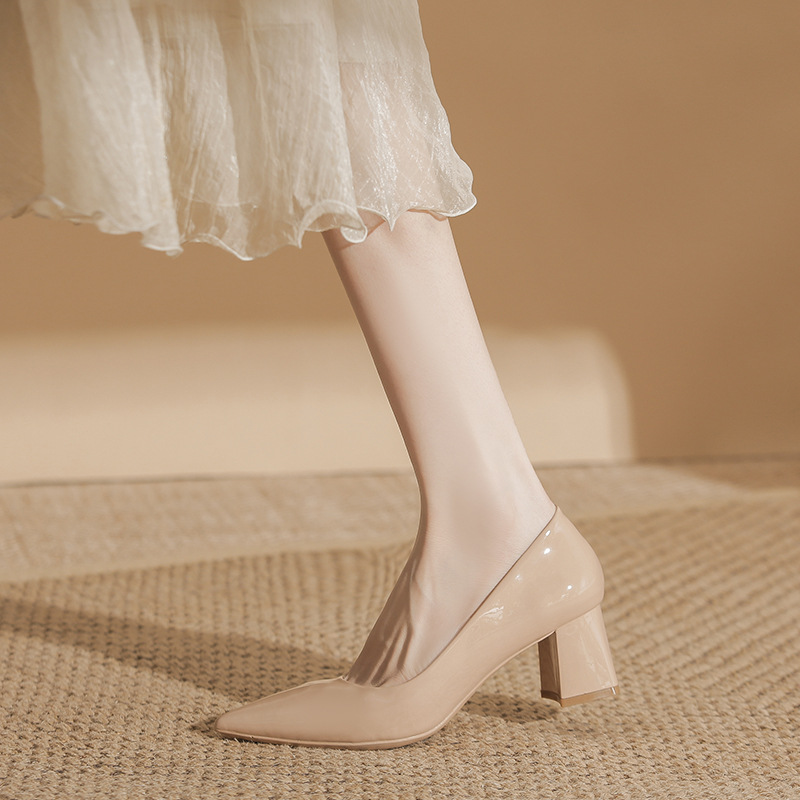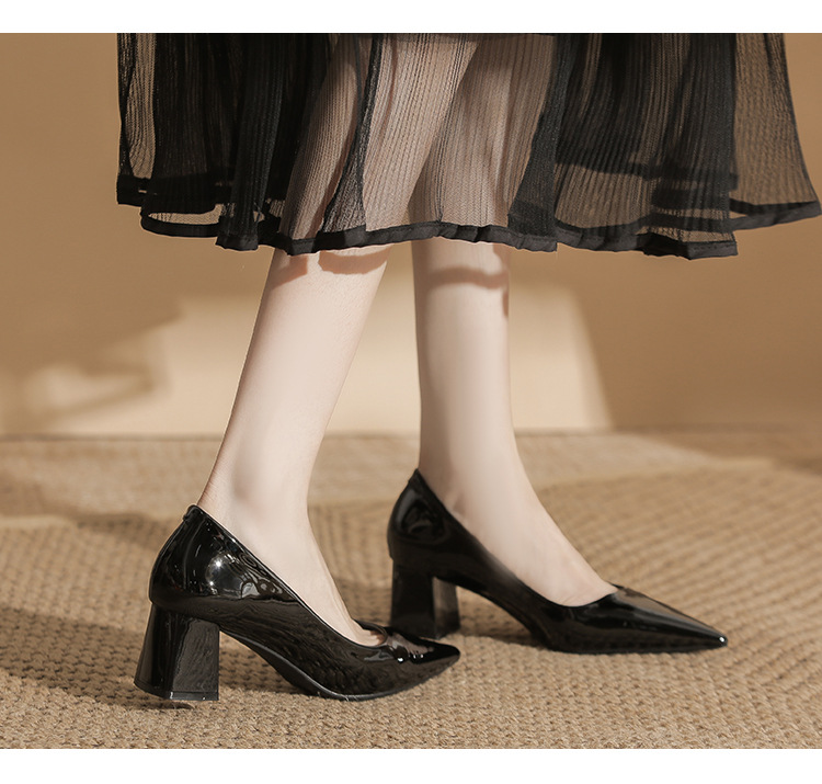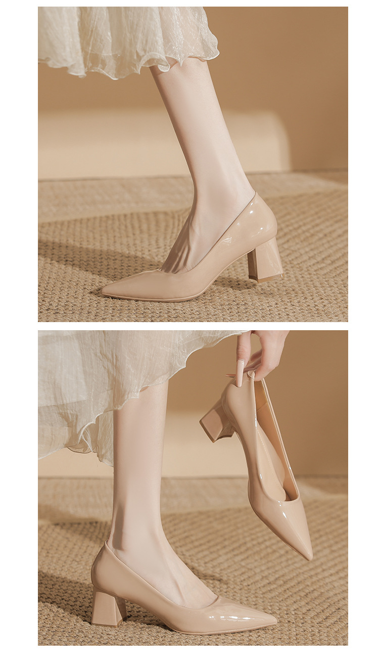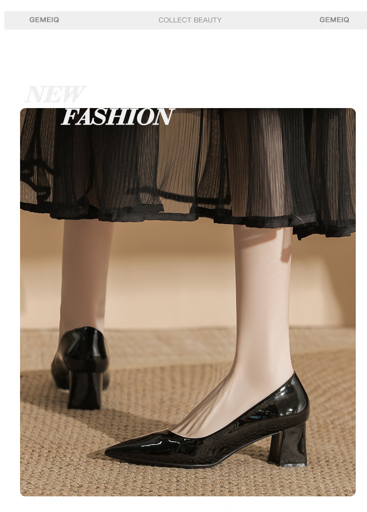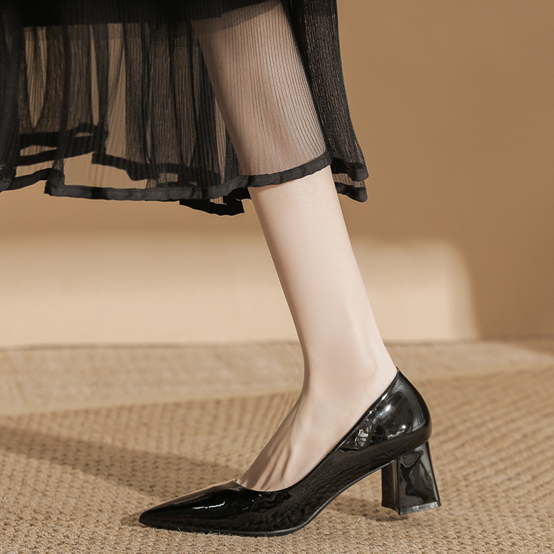 프렌치 포인티드 토 슈퍼 소프트 하이힐 2025 봄 가을 신상품 피곤하지 않은 발 인터뷰 전문 신발 여성용 얕은 굽 싱글 슈즈스토어 가기