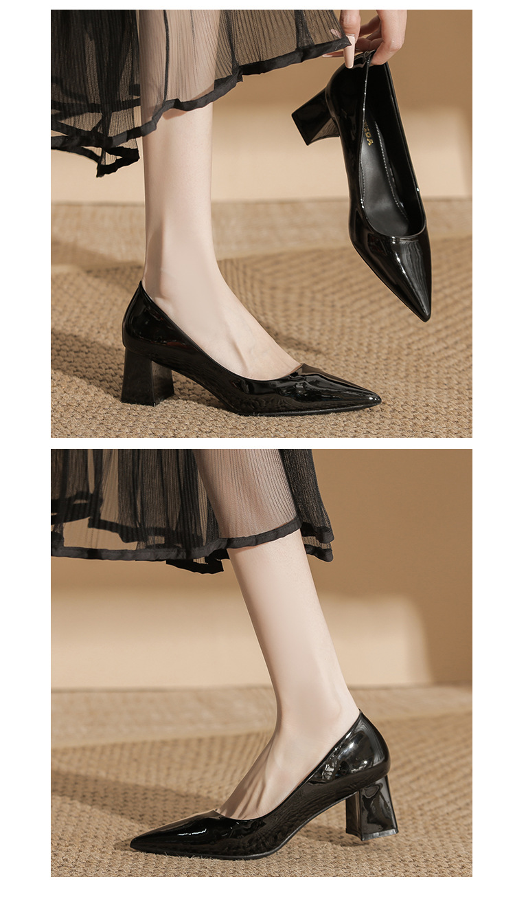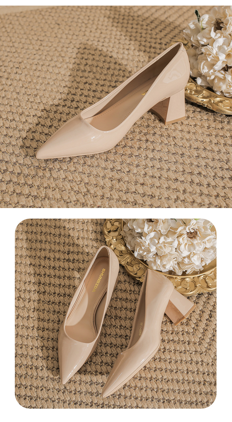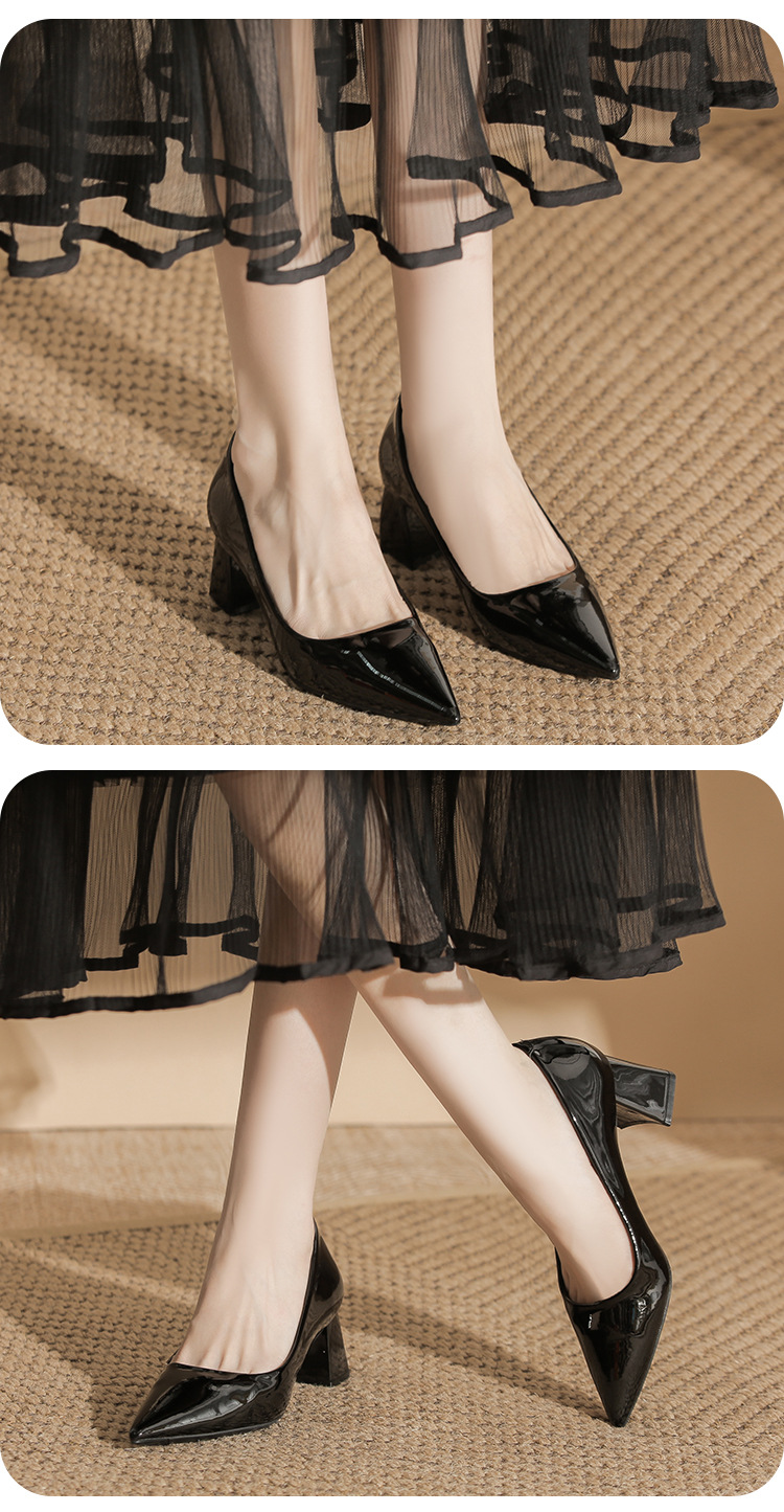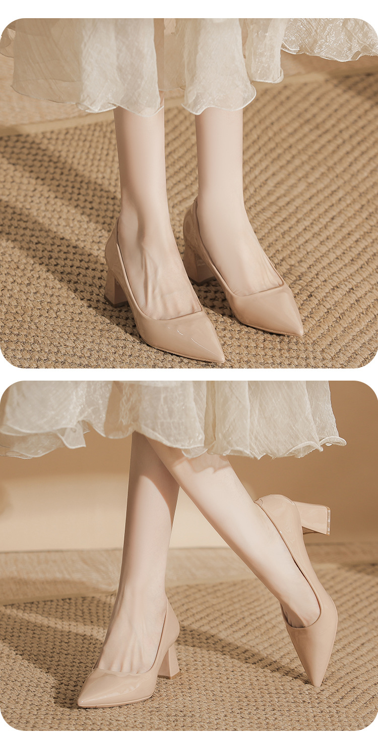 프렌치 포인티드 토 슈퍼 소프트 하이힐 2025 봄 가을 신상품 피곤하지 않은 발 인터뷰 전문 신발 여성용 얕은 굽 싱글 슈즈스토어 가기