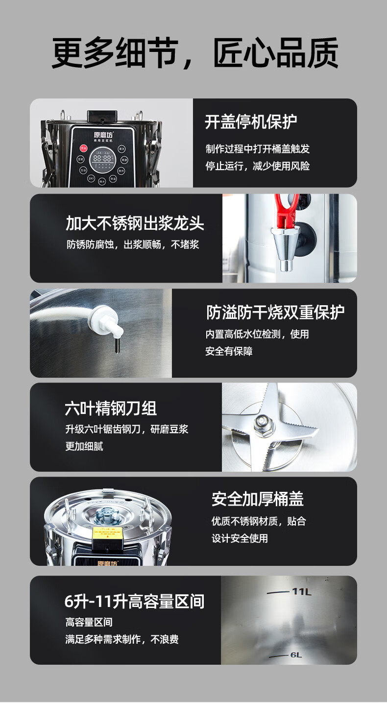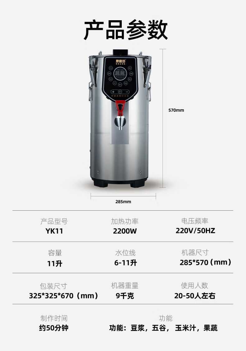 Joyoung 상업용 두유 기계 YK11 완전 자동 대용량 11 리터 캔틴 아침 식사 상점 펄프와 찌꺼기 분리 연삭 및 요리 통합스토어 가기