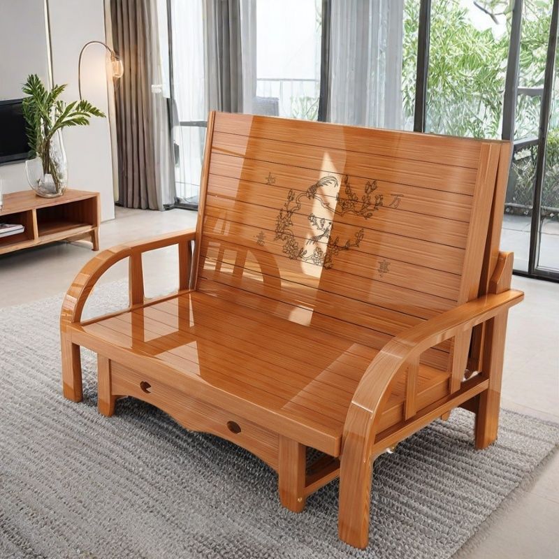 대나무 소파 침대 이중 목적 소형 싱글 더블 접이식 침대 점심 시간 성인 가정용 간단한 사무실 대나무 침대 의자