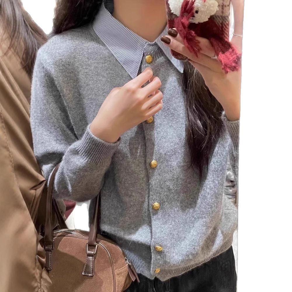 여성을 위한 새로운 가짜 투피스 셔츠 칼라 스플라이스 스웨터, 여성용 패셔너블한 고급 연령 감소 한국식 디자인 탑, 봄, 가을스토어 가기
