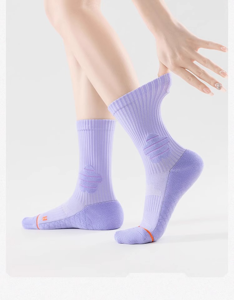 여성용 배드민턴 양말, 종아리 중간 수건 바닥, 통기성, 땀 흡수 및 탈취제, 여성용 스포츠 러닝 및 등산 하이킹 양말