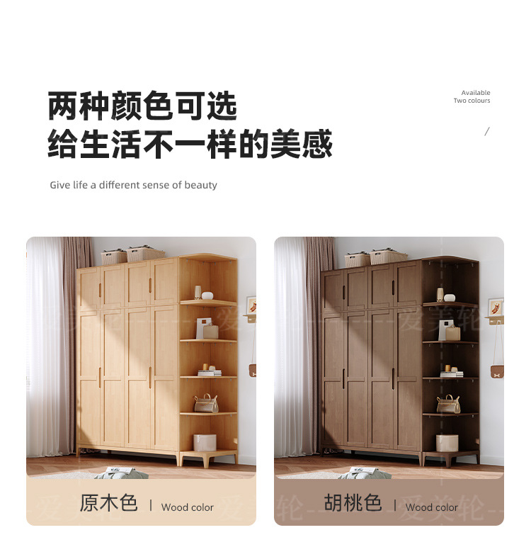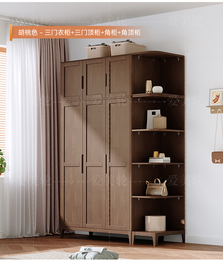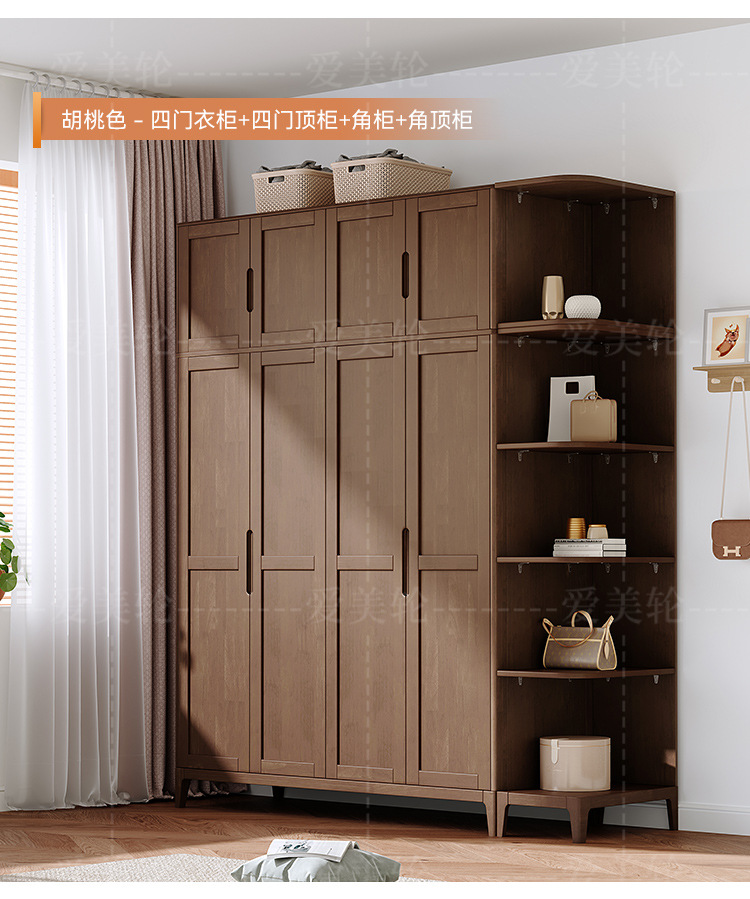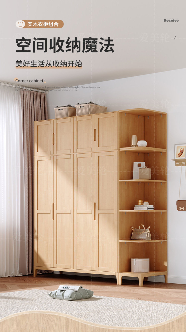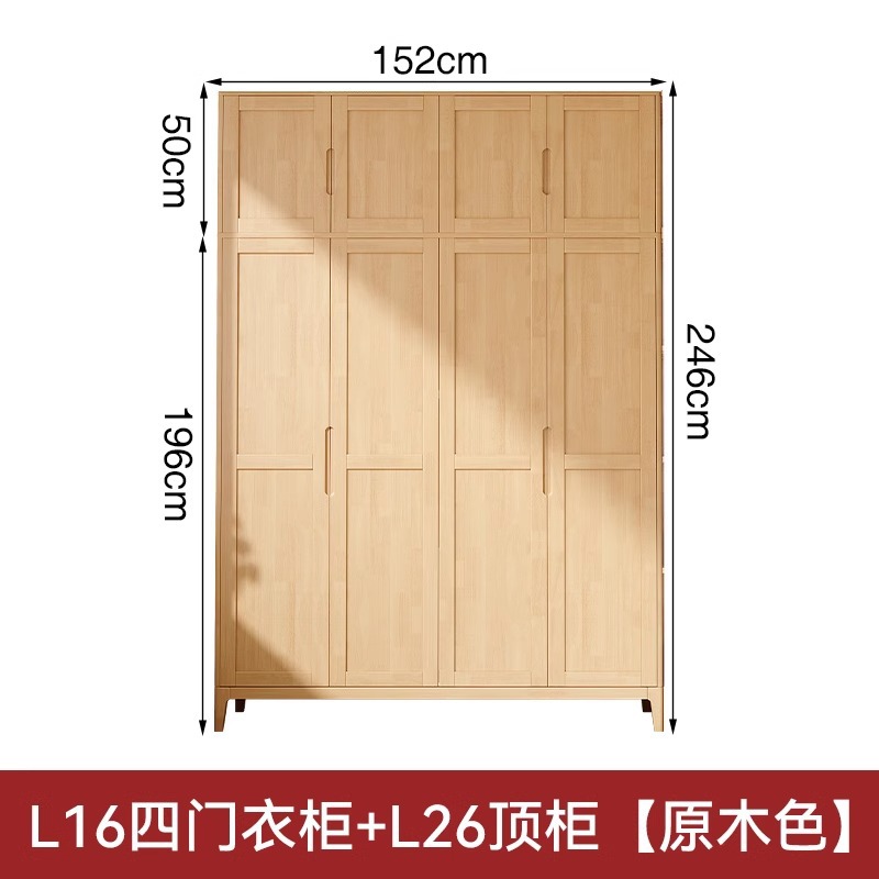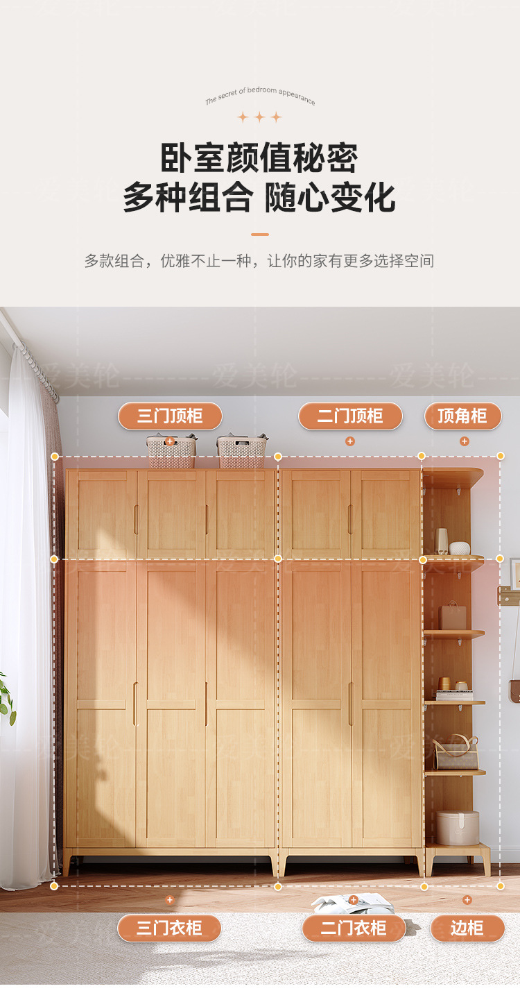 북유럽 단단한 나무 옷장 조합 침실 양문형 1.5M 대용량 고무 나무 단단한 나무 옷장 작은 아파트 옷장스토어 가기