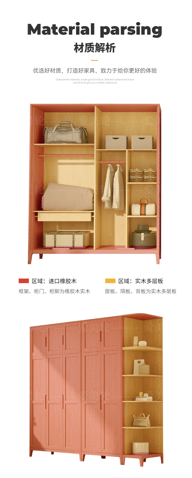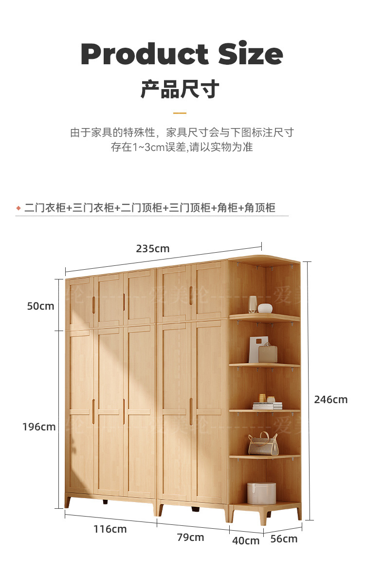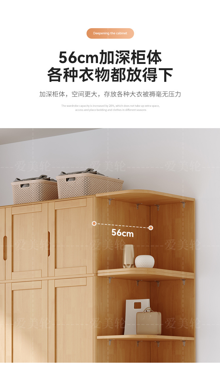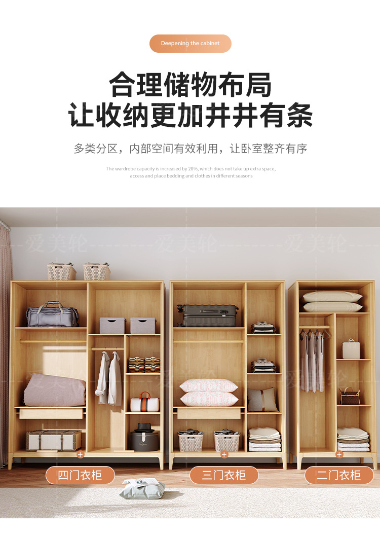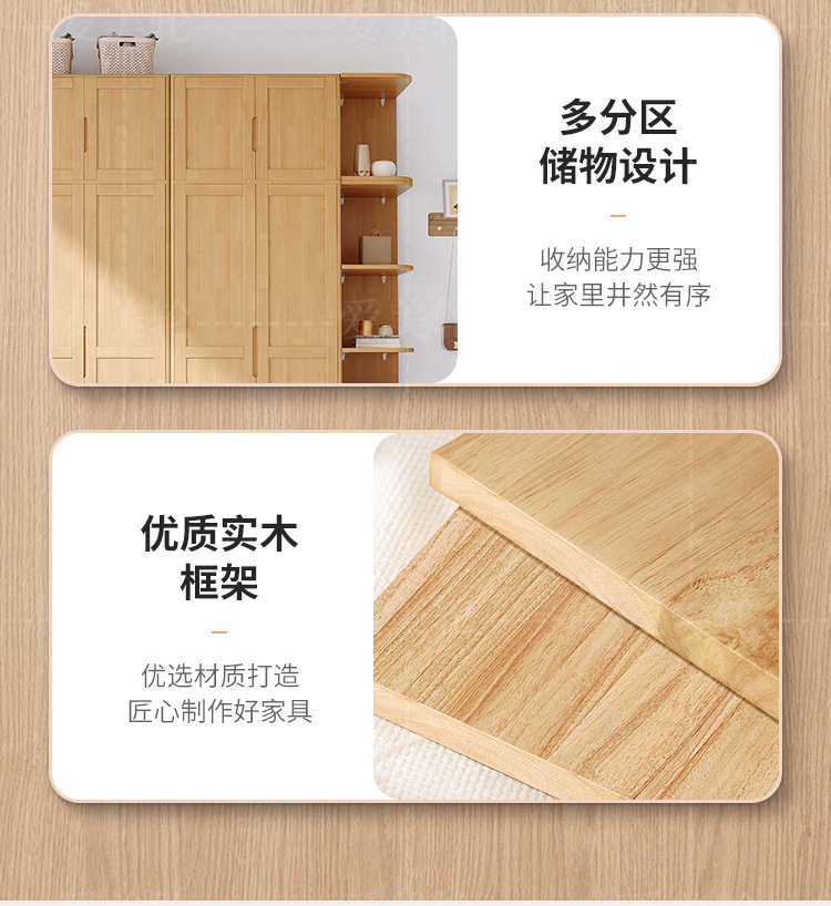 북유럽 단단한 나무 옷장 조합 침실 양문형 1.5M 대용량 고무 나무 단단한 나무 옷장 작은 아파트 옷장스토어 가기