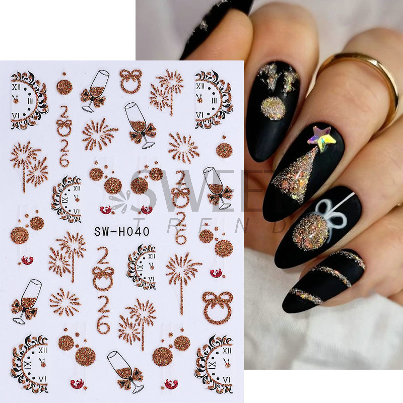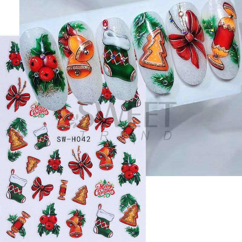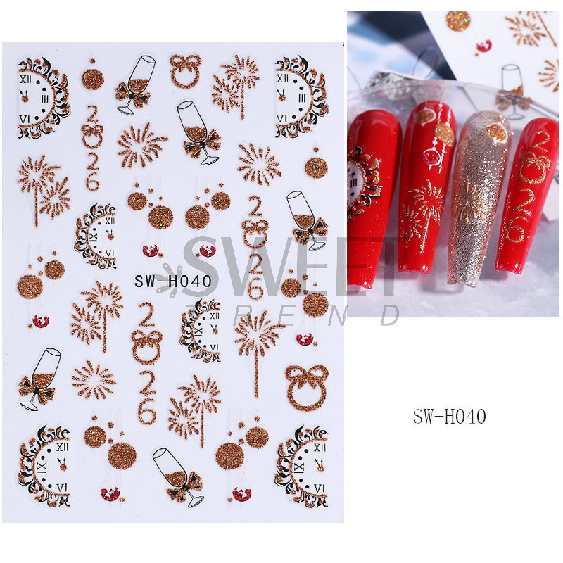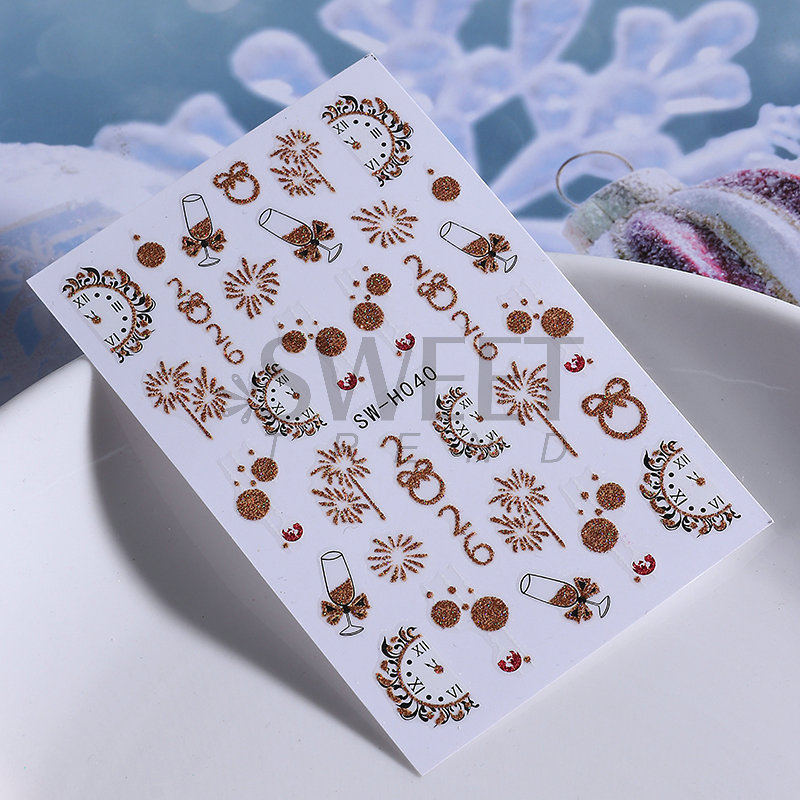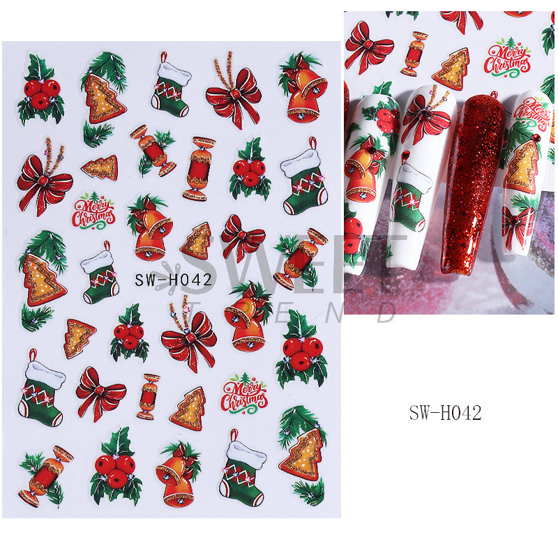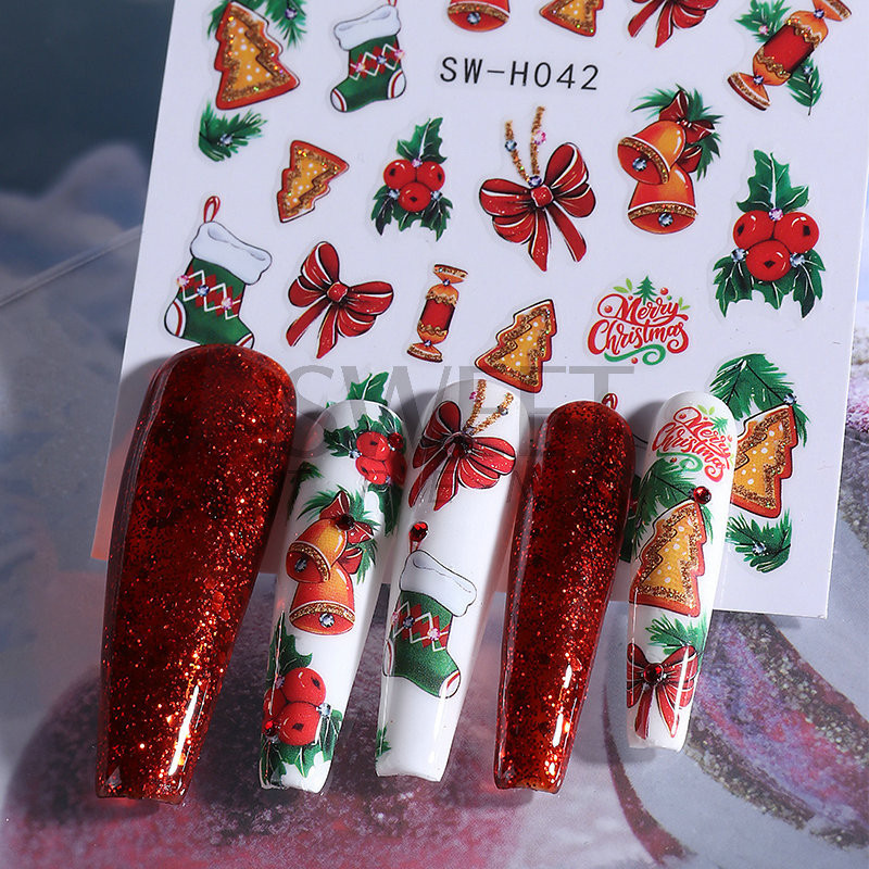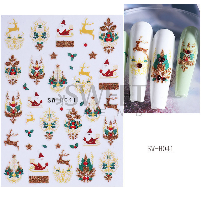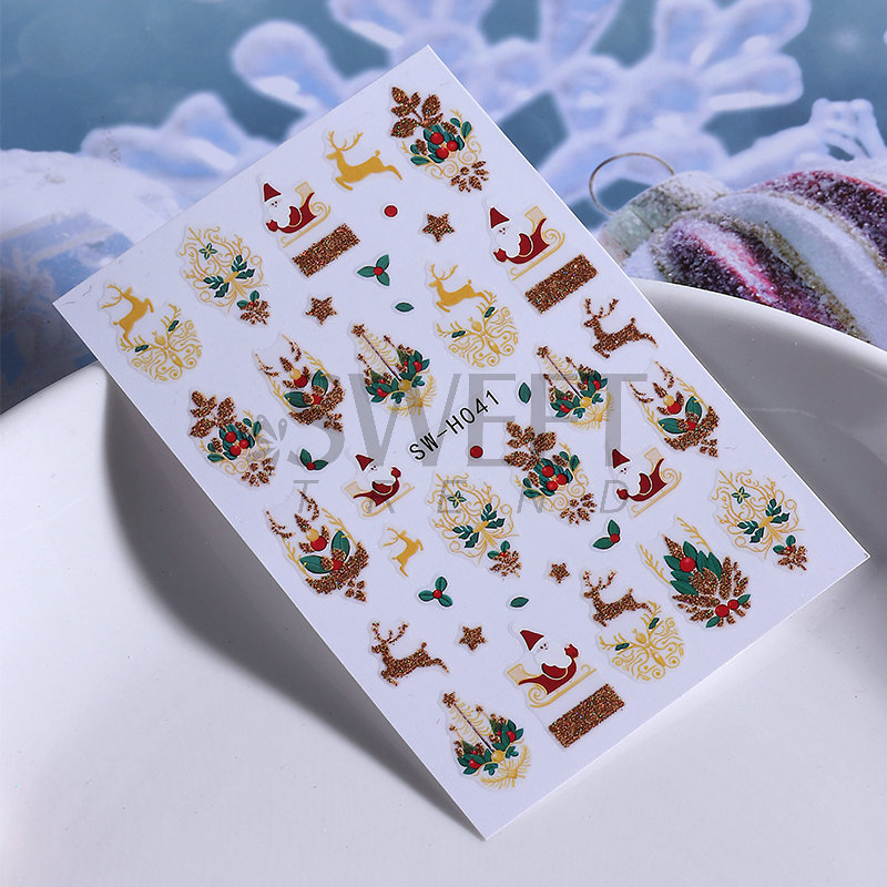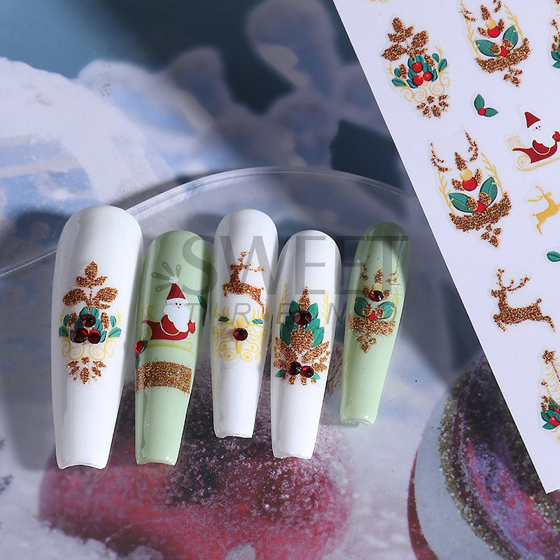 국경 간 새로운 크리스마스 네일 아트 스티커 혼합 배치 산타 클로스 눈송이 겨울 네일 데칼 3D 입체 스티커