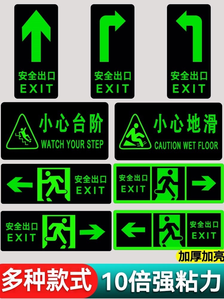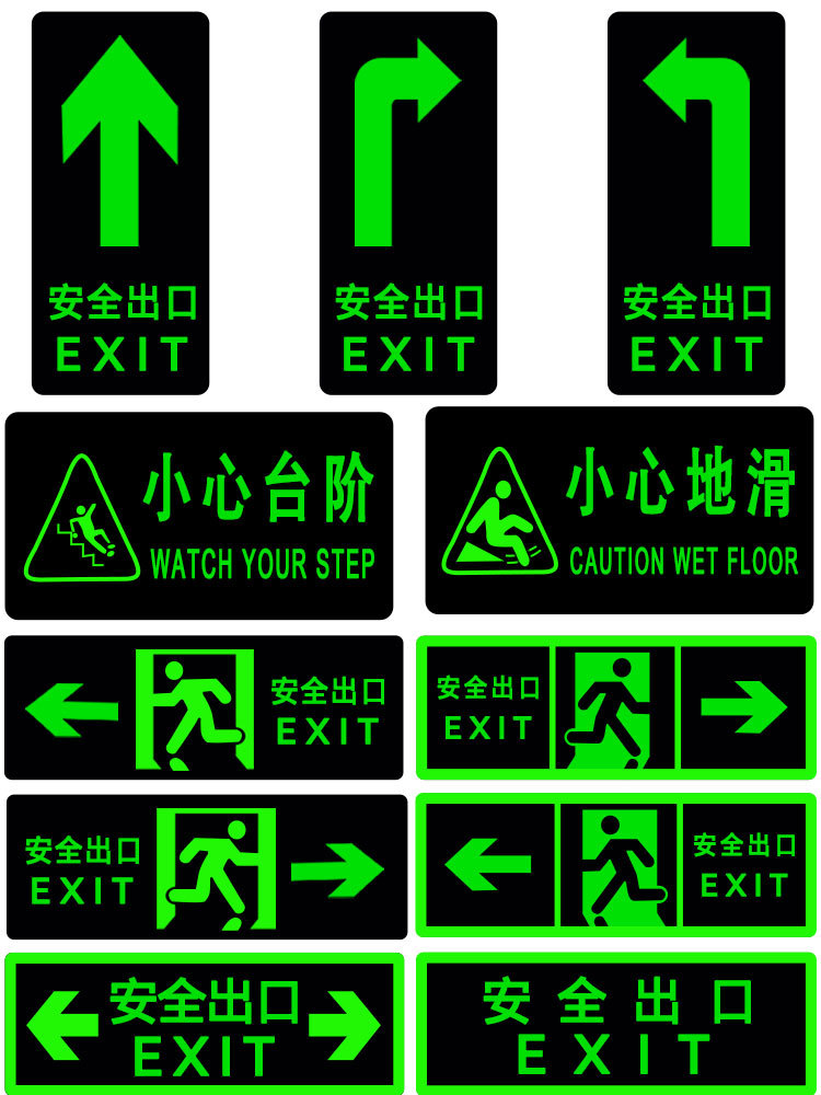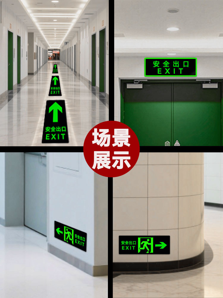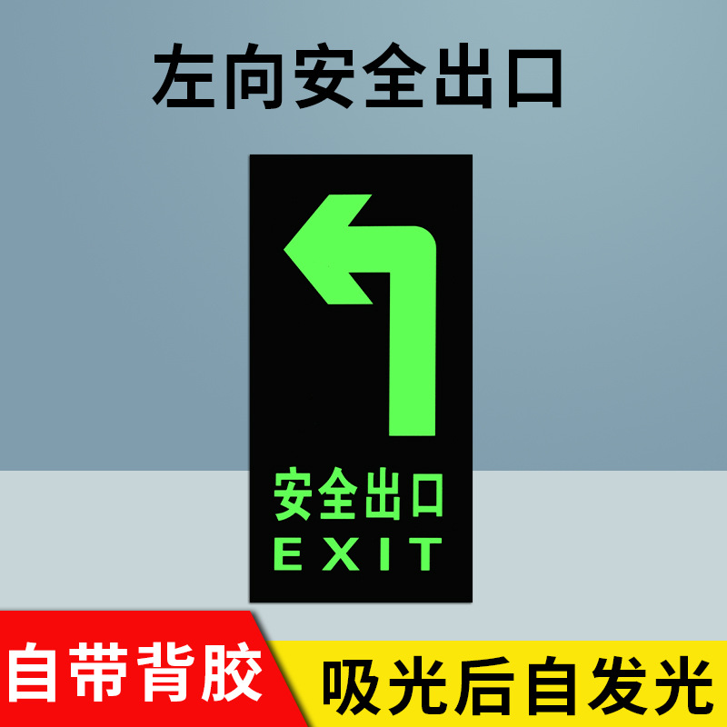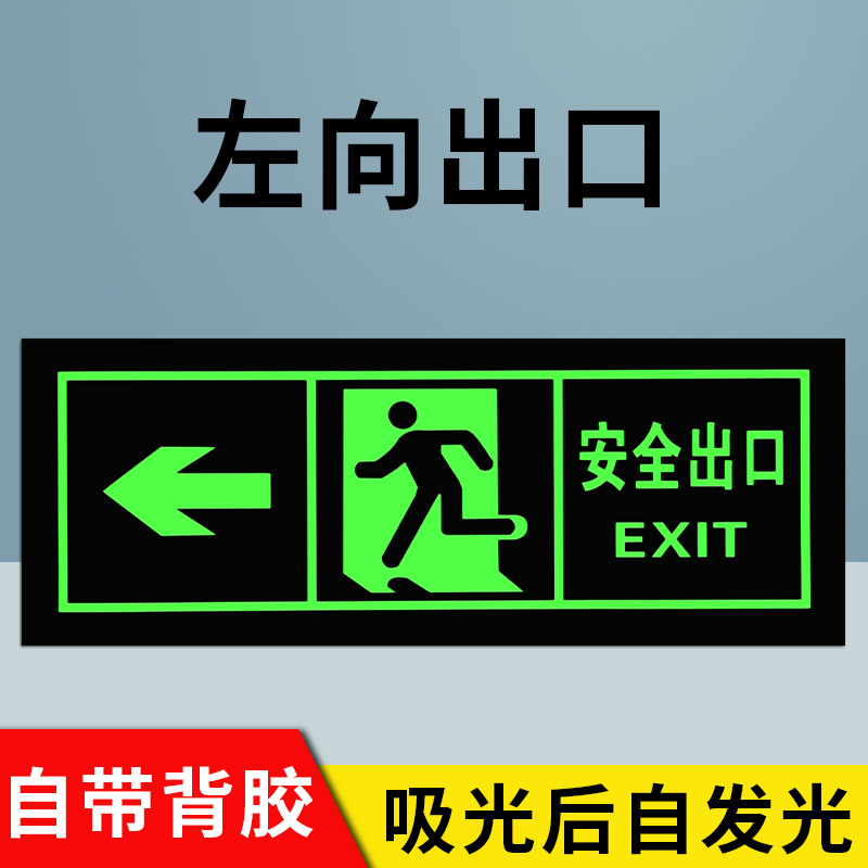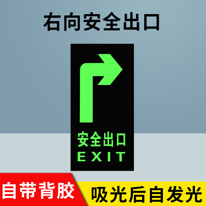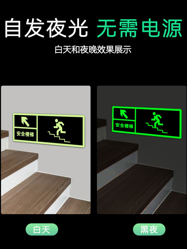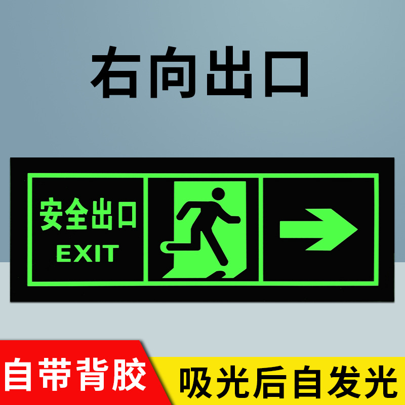 전원이 없는 안전구출구 자가발광 화재비상탈출표지판 형광지 스티커 안전통로 출구 벽 스티커