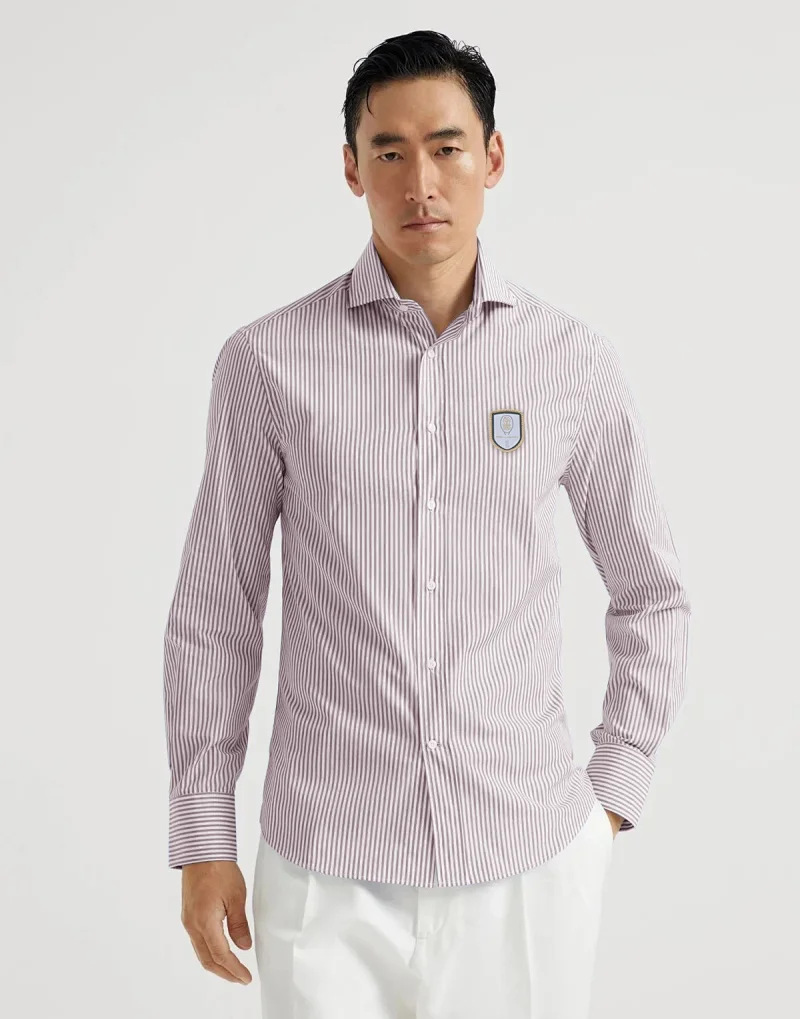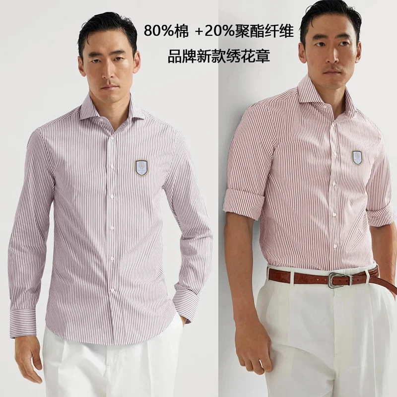 渠道牛货现货 BC Brunel10 Cucinell1官网同款6000元 男士长袖翻领衬衫 棉刺绣梭织 品牌新款绣花章 舒适透气 休闲风格 25夏季新款 G2511037144
