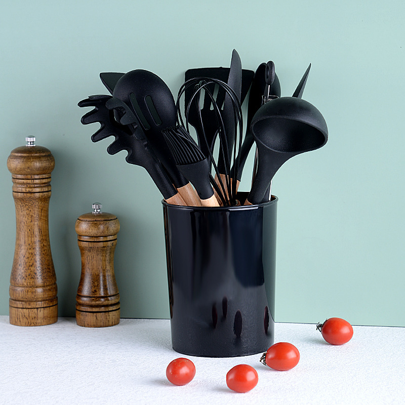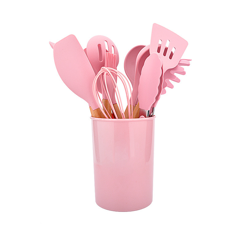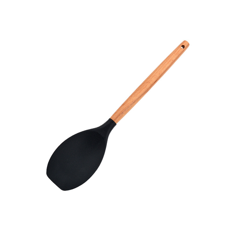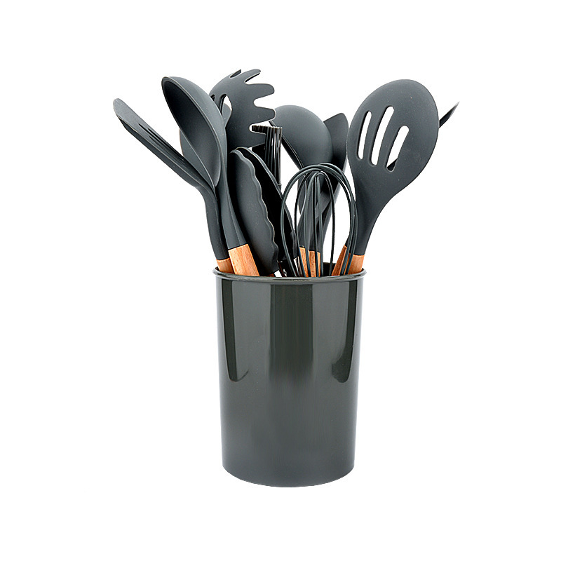 나무 손잡이 실리콘 주방 용품 세트 12피스 식품 접촉 비 스틱 주걱 요리 주걱 베이킹 주걱