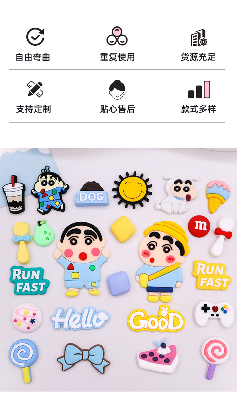 크레용 신짱 부드러운 접착제 DIY 쥬얼리 액세서리 휴대 전화 케이스 구멍 신발 패치 워터 컵 냉장고 태블릿 케이스 장식 스티커