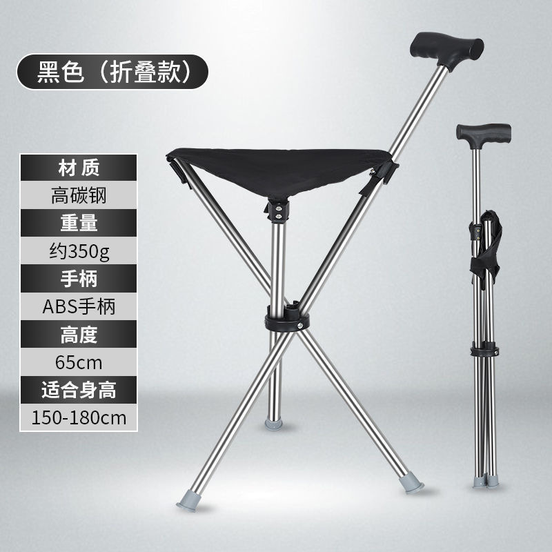 노인을 위한 스테인레스 스틸 경량 등산 지팡이, 노인용 시트, 쌓을 수 있는 지팡이, 휴대용 미끄럼 방지 접이식 다기능스토어 가기
