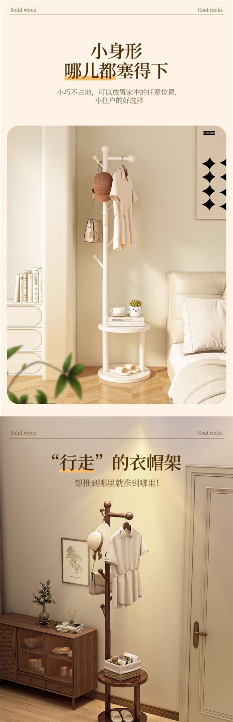 단단한 나무 코트 랙 바닥 스탠딩 수직 홈 침실 룸 스토리지 간단한 옷 걸이 가방 선반 무료 배송스토어 가기