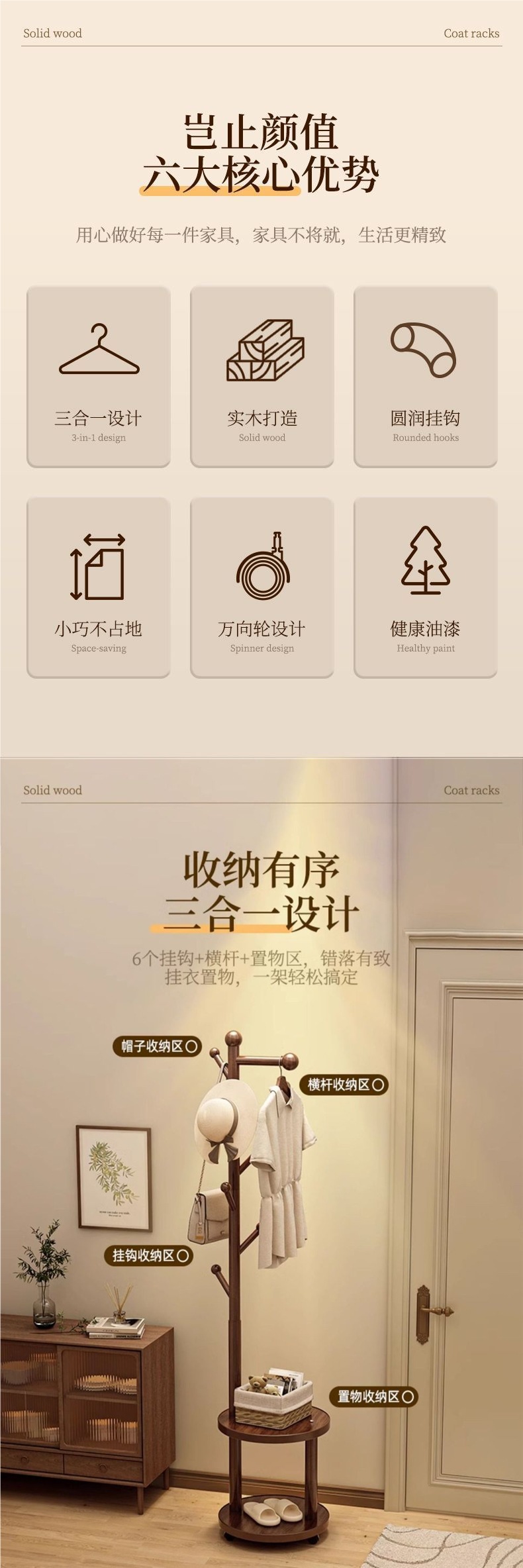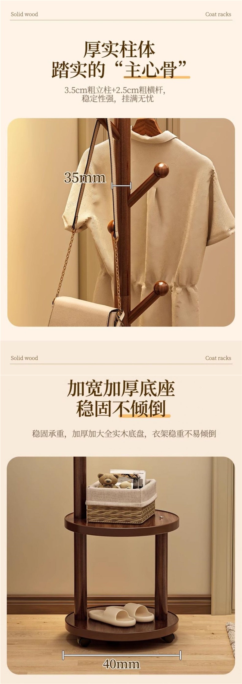 단단한 나무 코트 랙 바닥 스탠딩 수직 홈 침실 룸 스토리지 간단한 옷 걸이 가방 선반 무료 배송