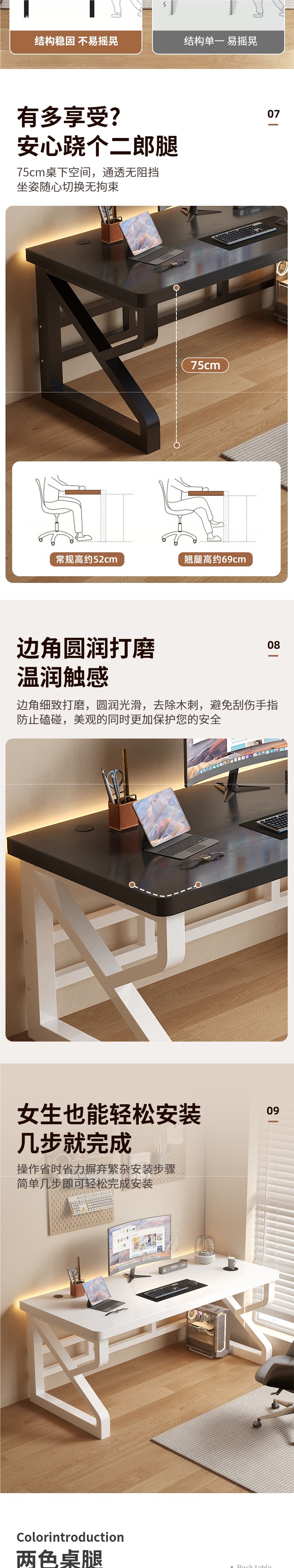 • [화이트 프레임] 사무라이 블랙 3cm 원목 데스크탑