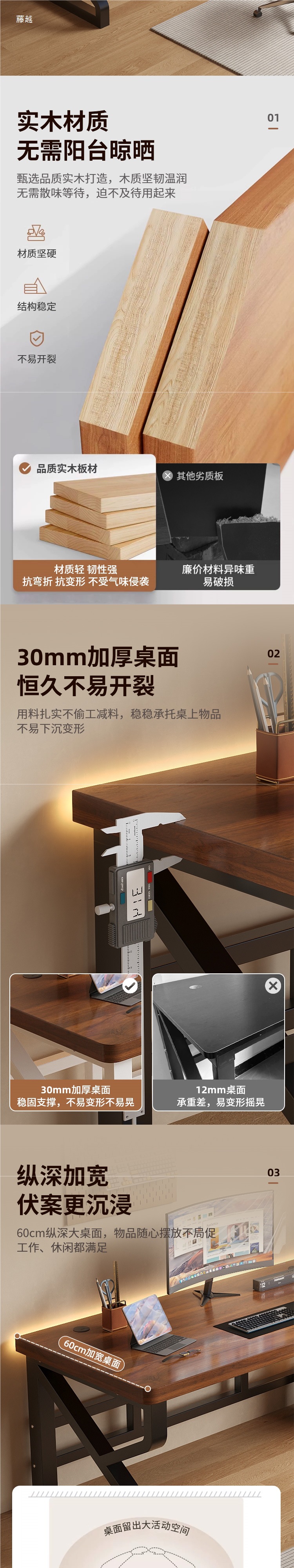 • [화이트 프레임] 월넛 컬러 3cm 원목 데스크탑