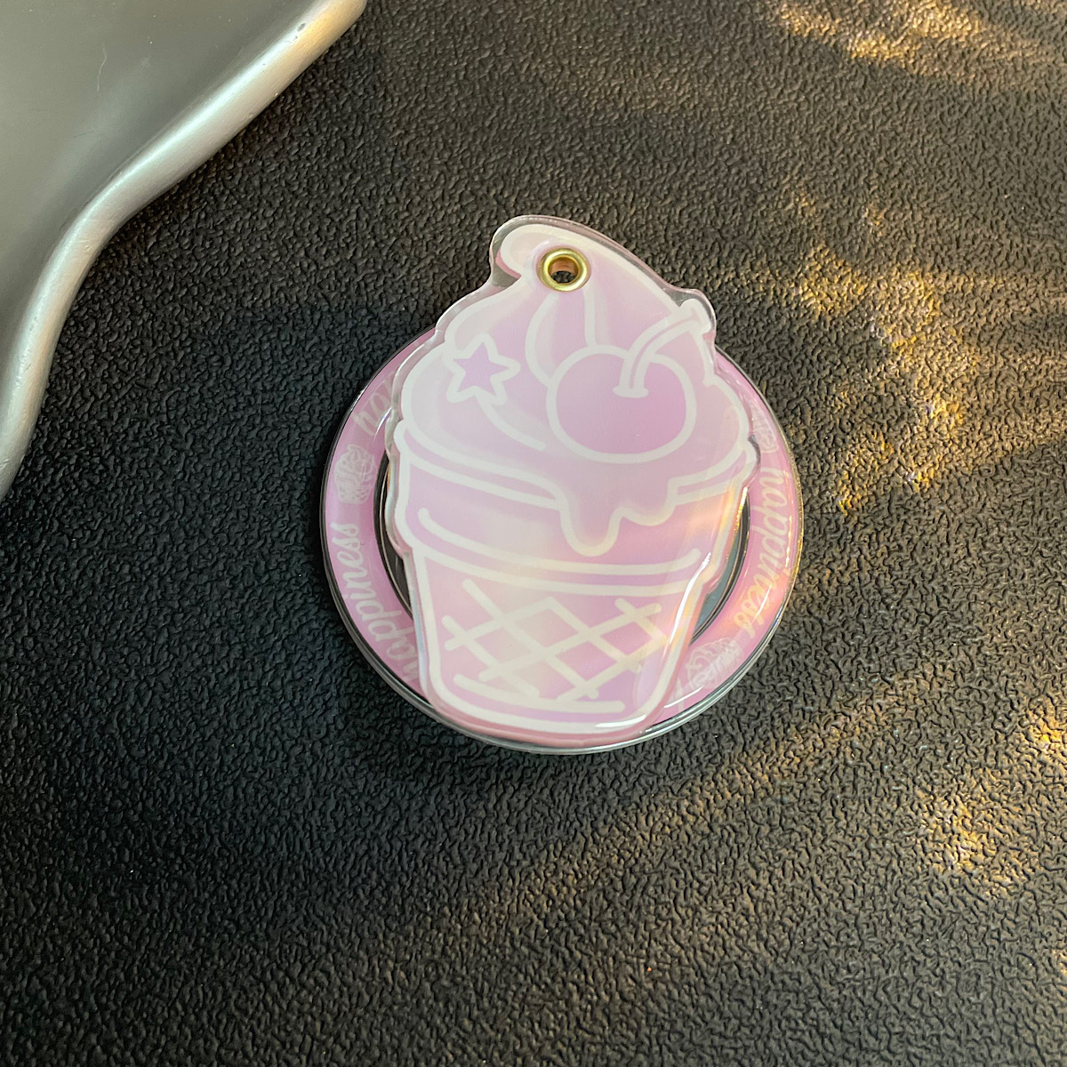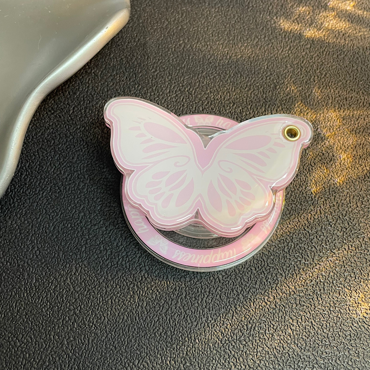 • 분홍색과 흰색 나비 화장 거울 자석 홀더