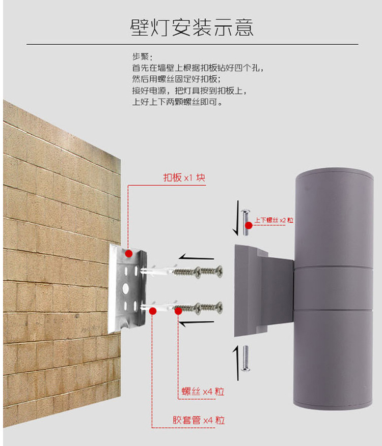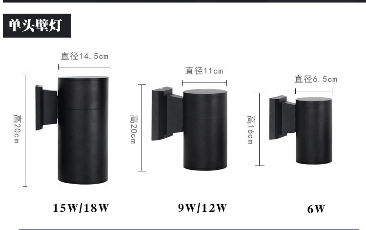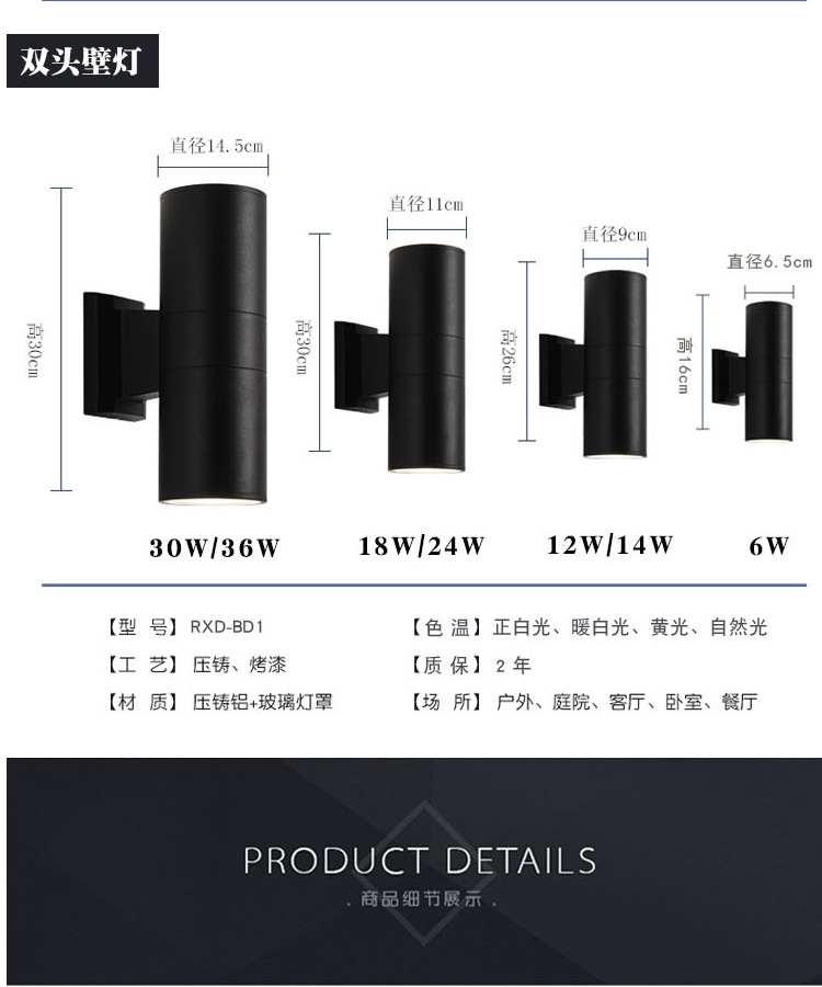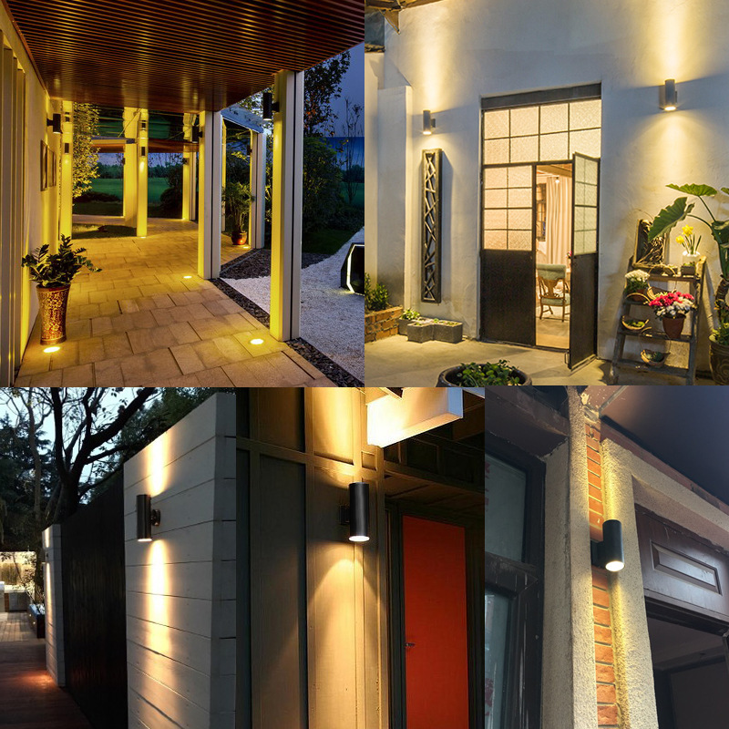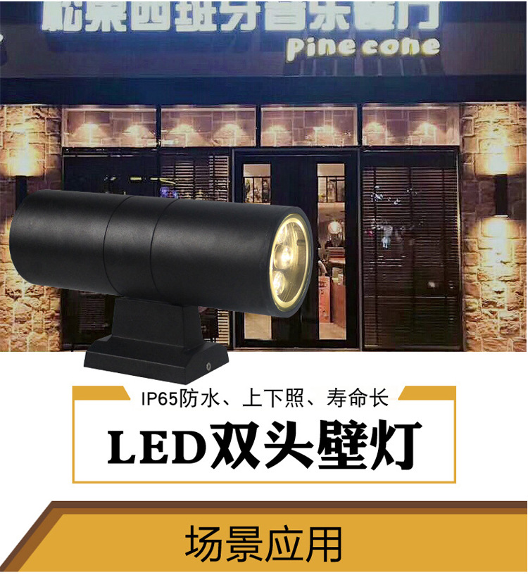 LED12W 방수 야외 벽 램프 더블 헤드 단일 헤드 라운드 외벽 위아래 스포트라이트 안뜰 야외 기둥 벽 램프