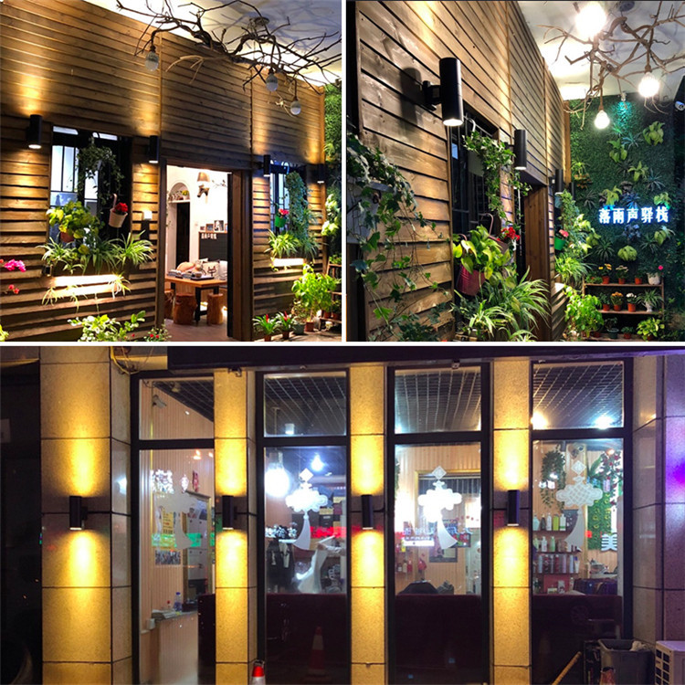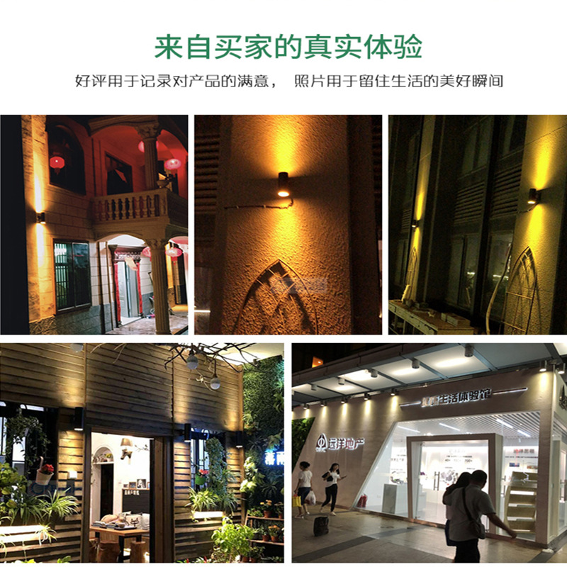 LED12W 방수 야외 벽 램프 더블 헤드 단일 헤드 라운드 외벽 위아래 스포트라이트 안뜰 야외 기둥 벽 램프스토어 가기