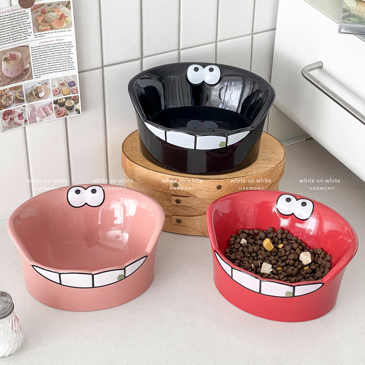• 큰 입 몬스터 세라믹 애완 동물 그릇 - 핑크
