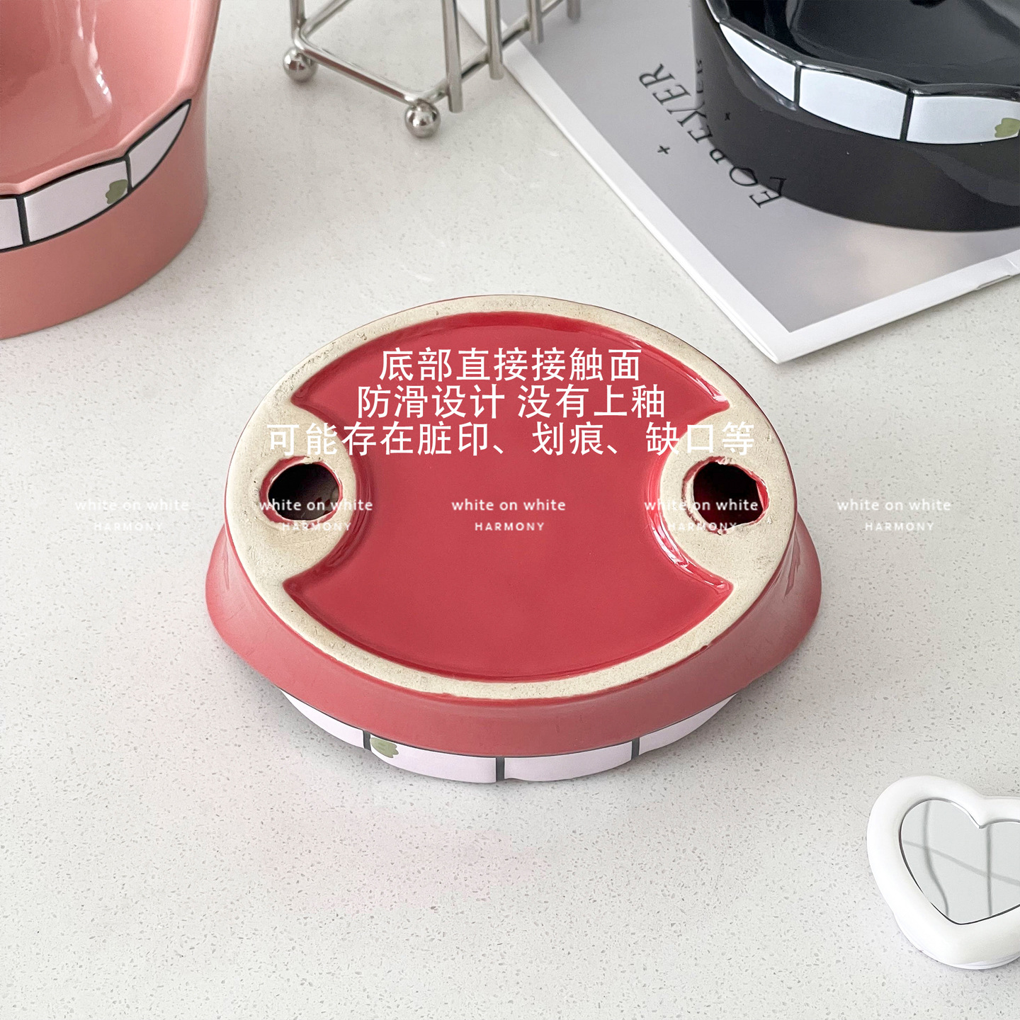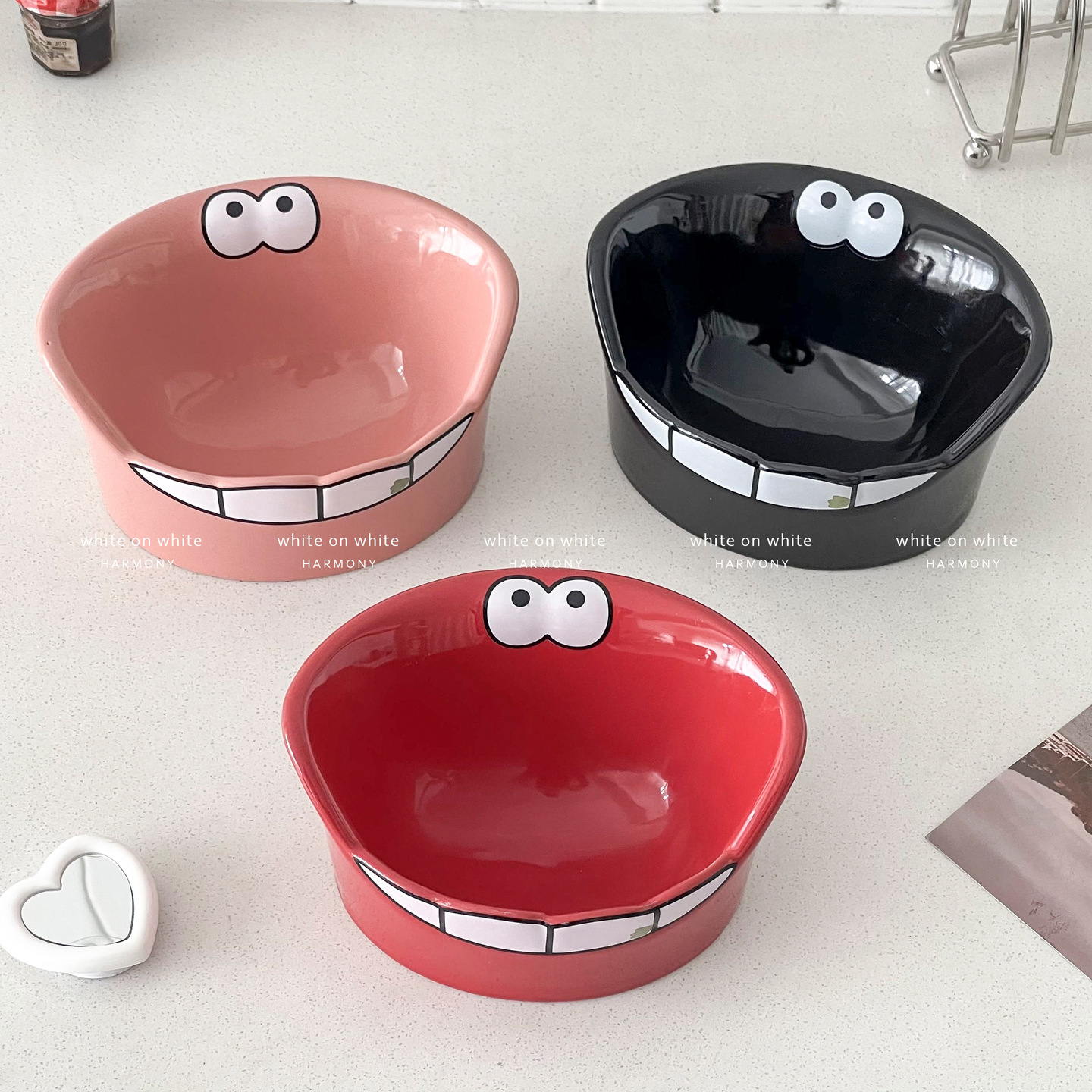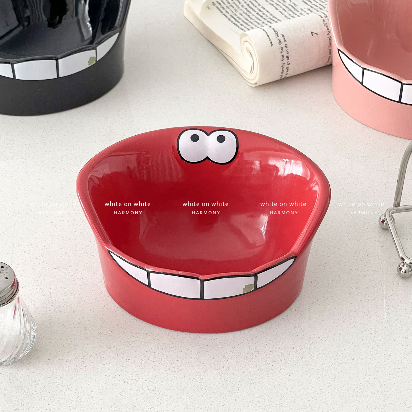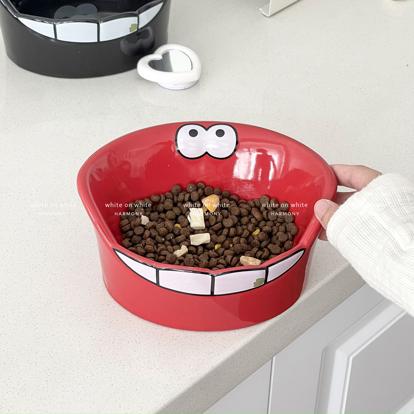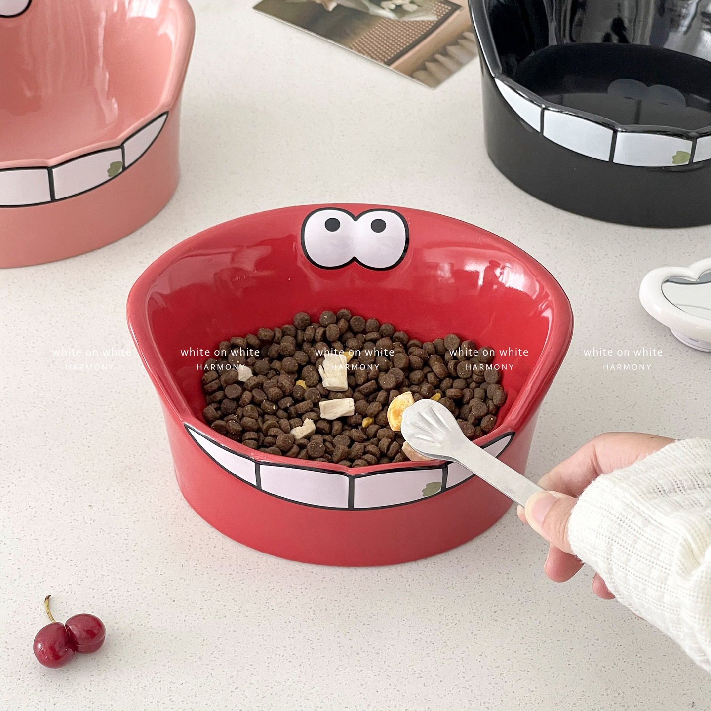 • 큰 입 괴물 세라믹 애완 동물 그릇-레드