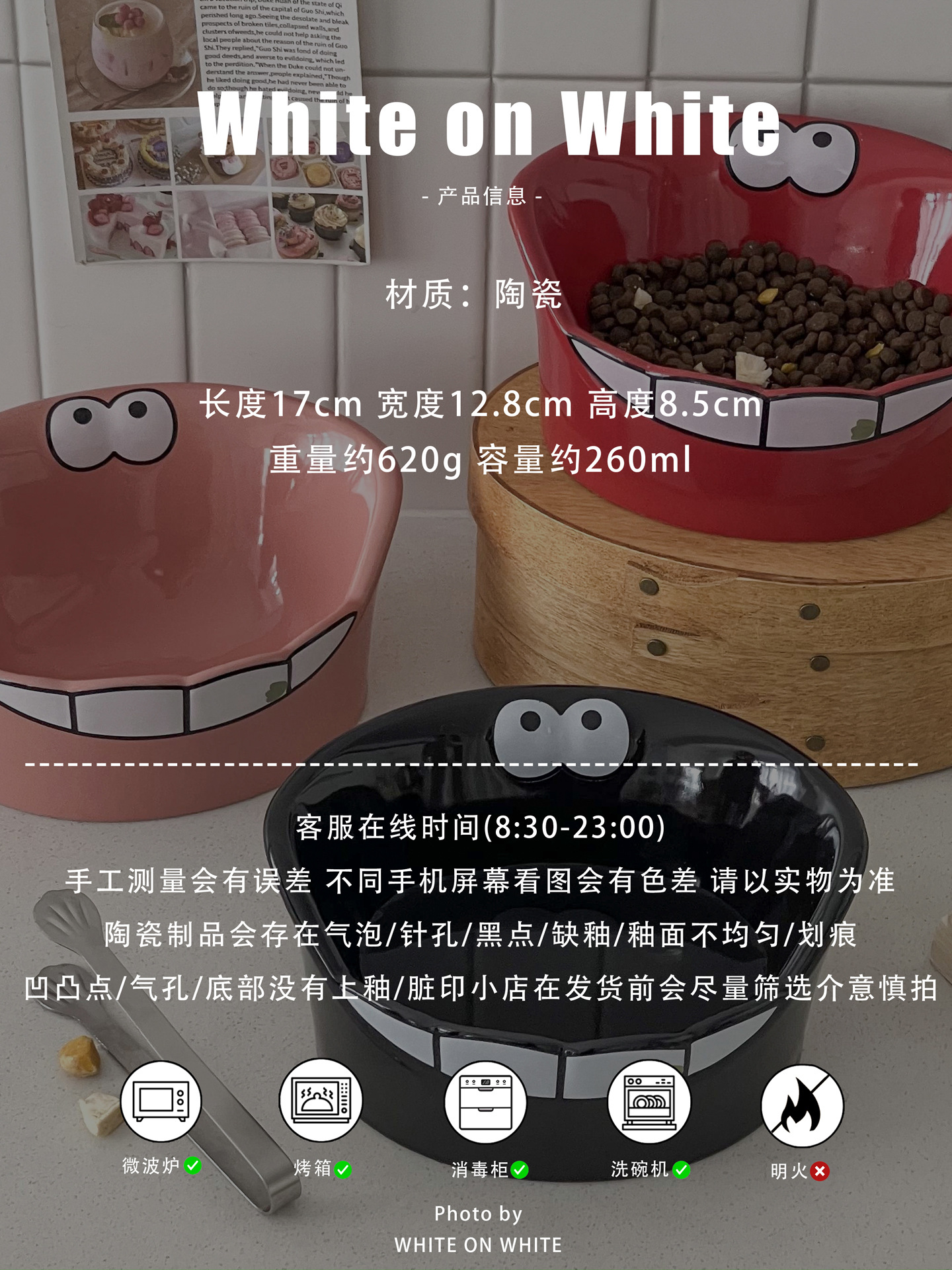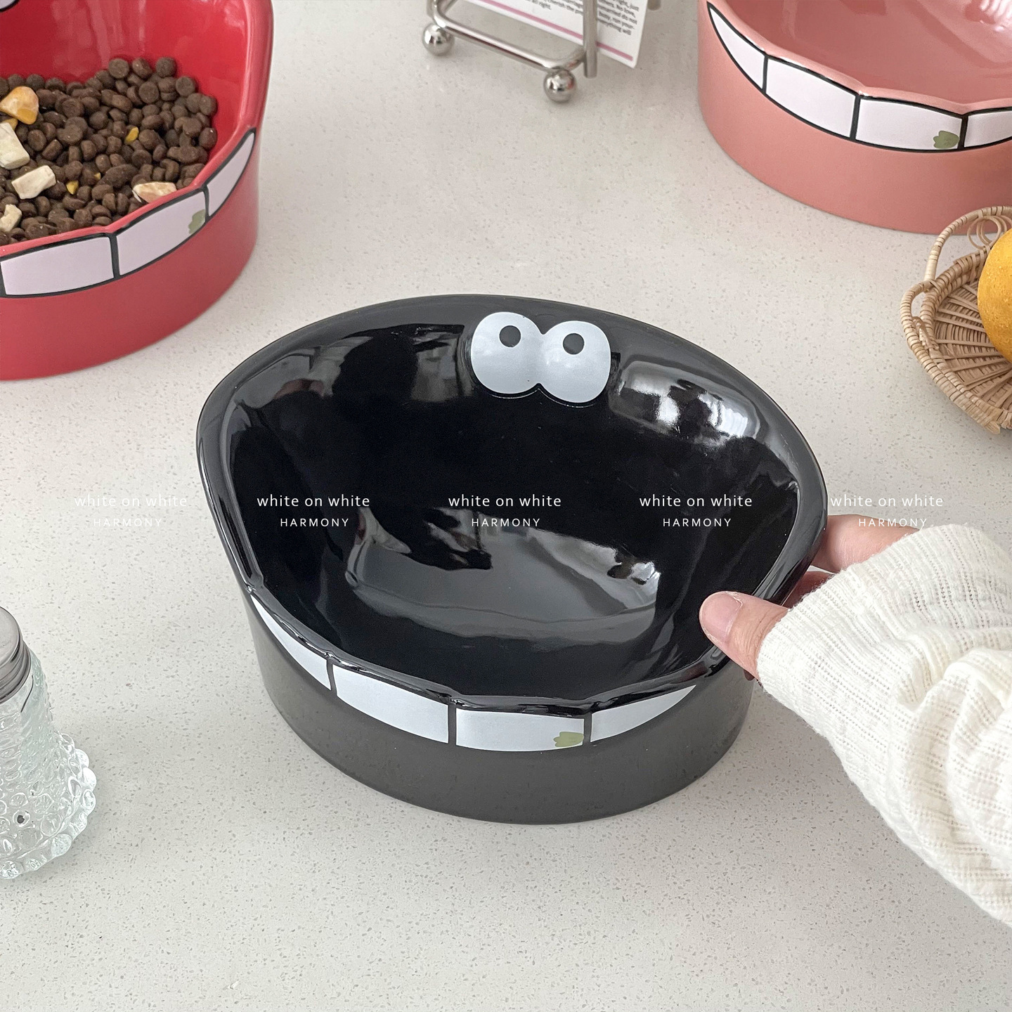 • 큰 입 괴물 세라믹 애완 동물 그릇-블랙