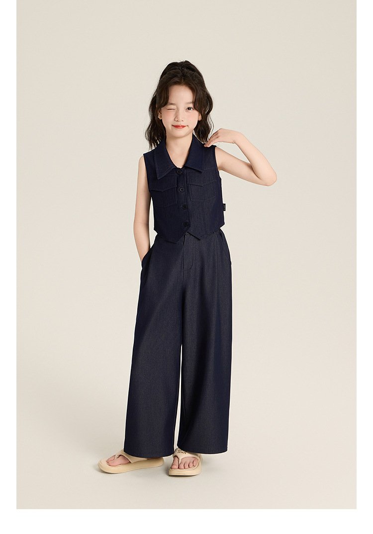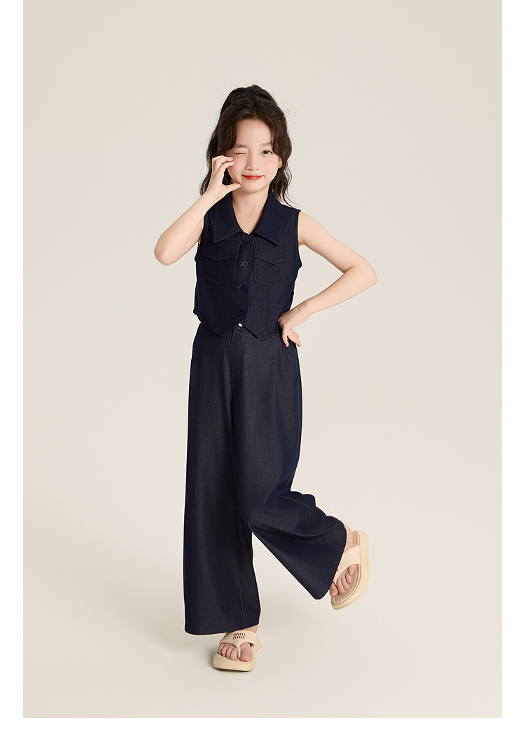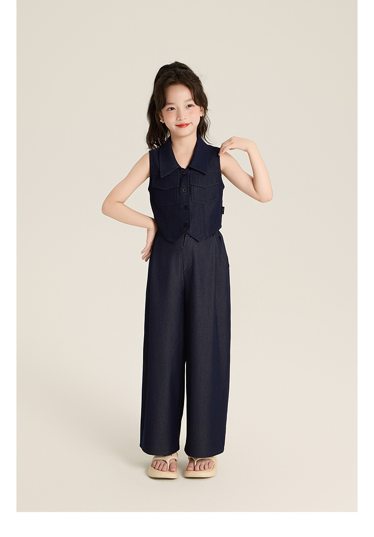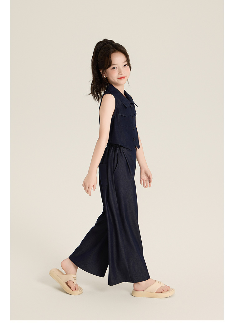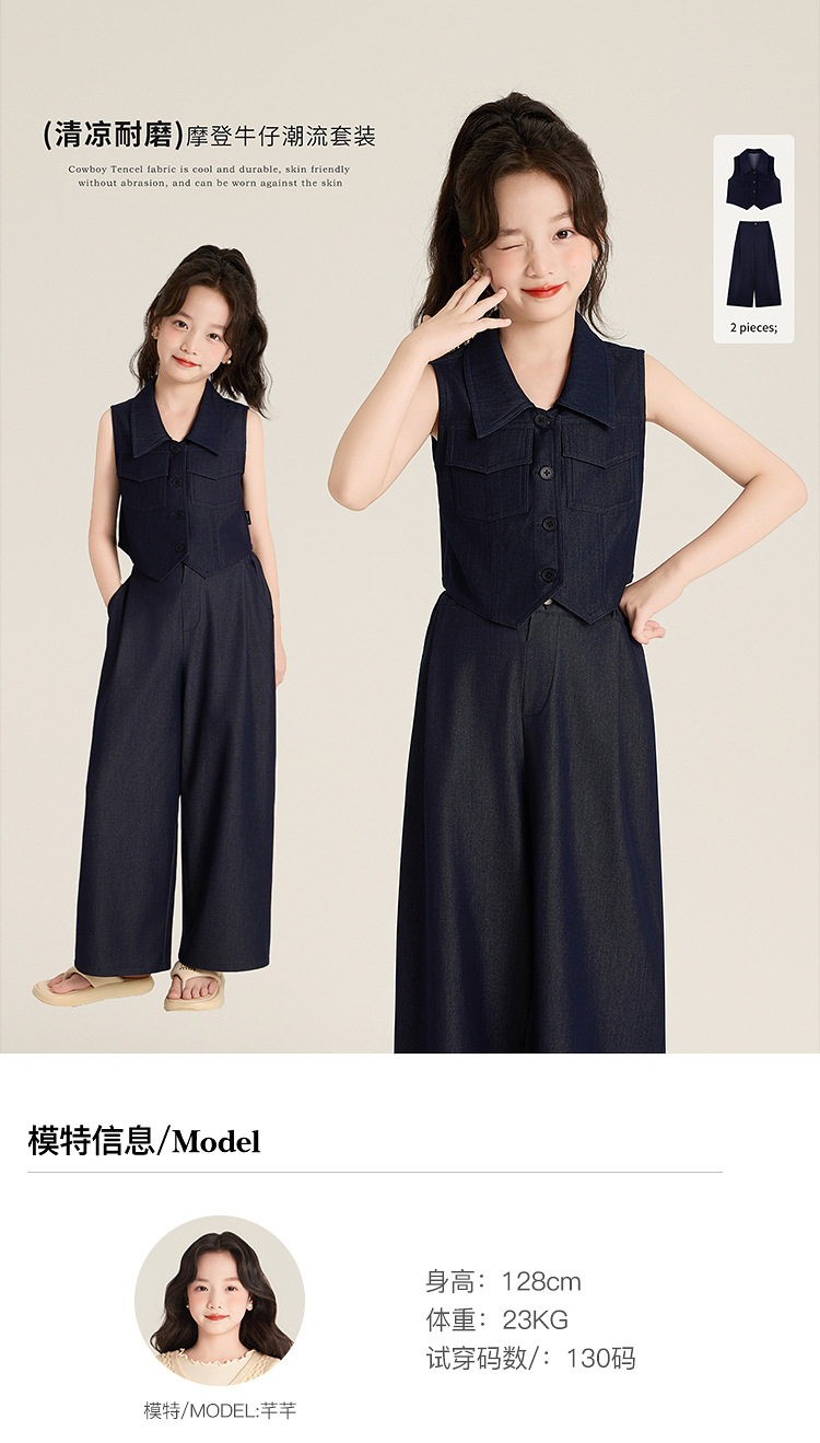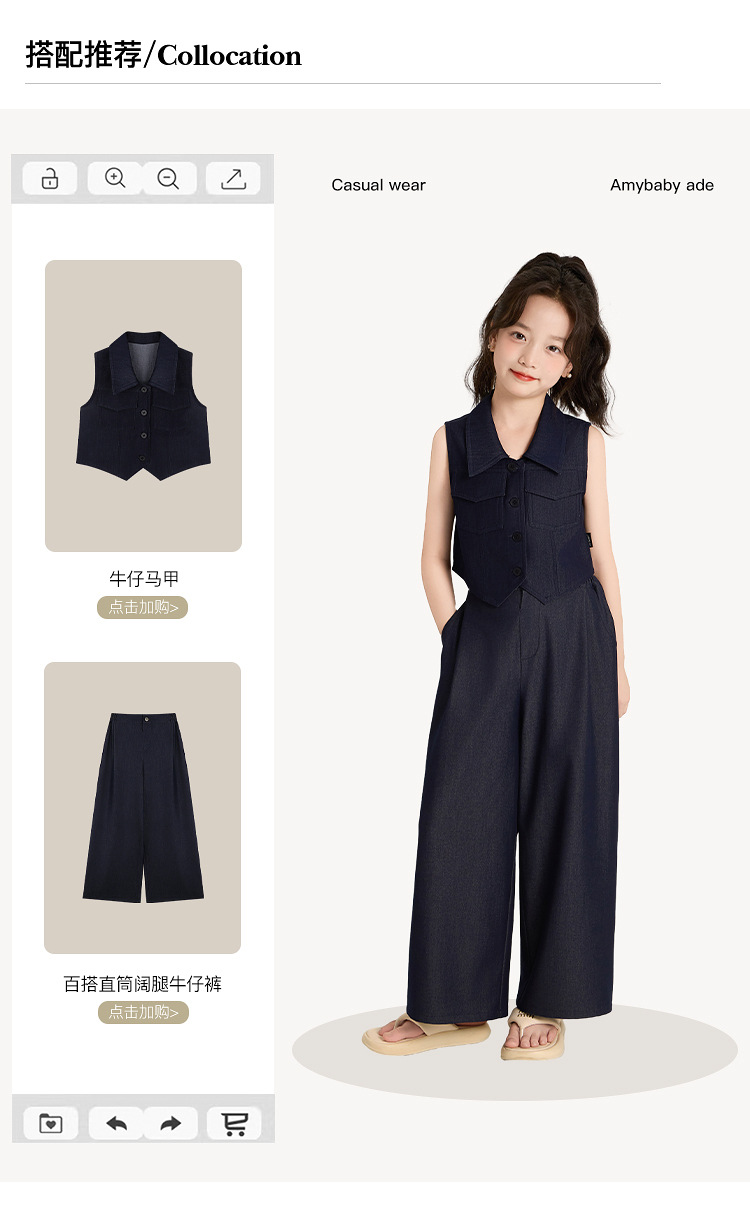 Amybaby 여아 정장 여름 2025 새로운 한국 스타일 디자인 트렌디 데님 조끼 와이드 팬츠스토어 가기