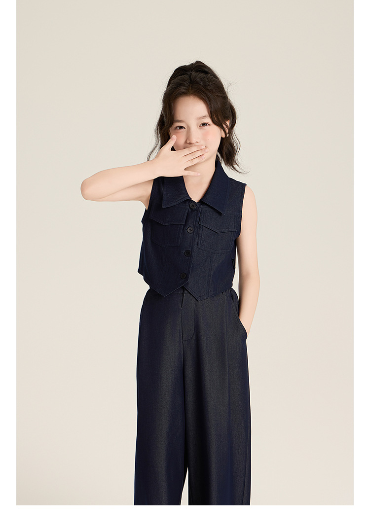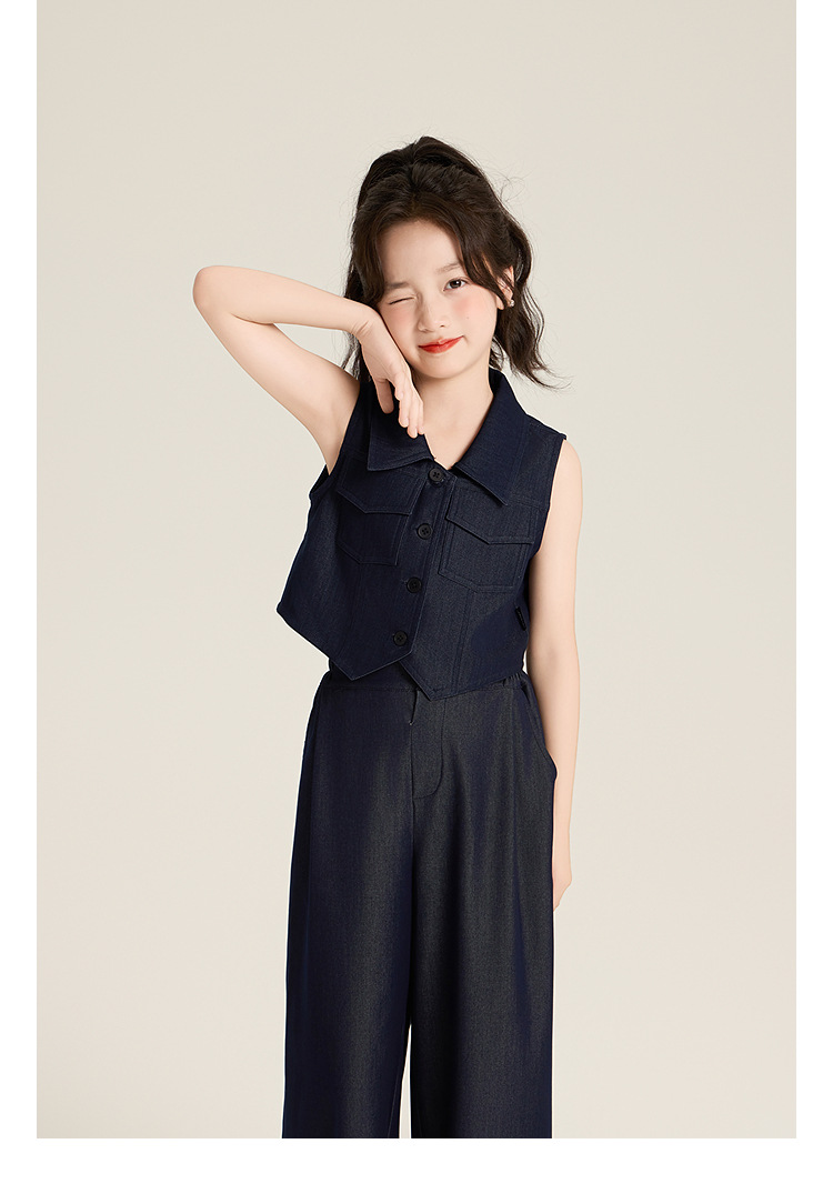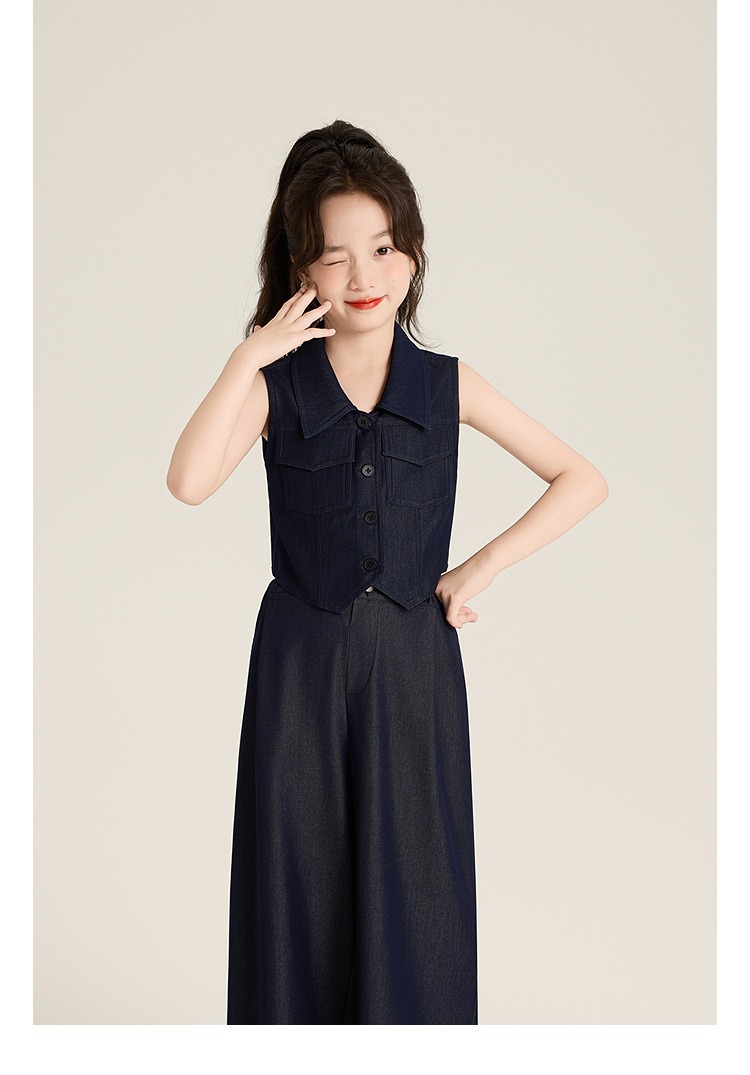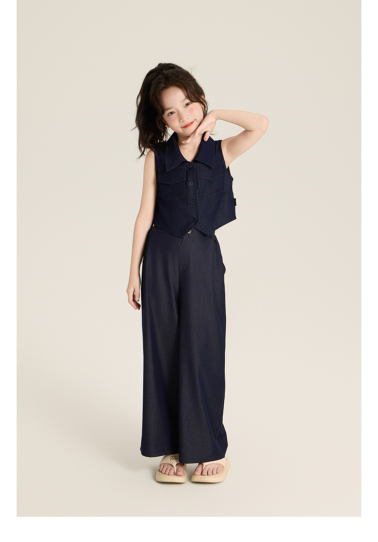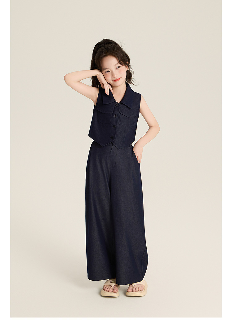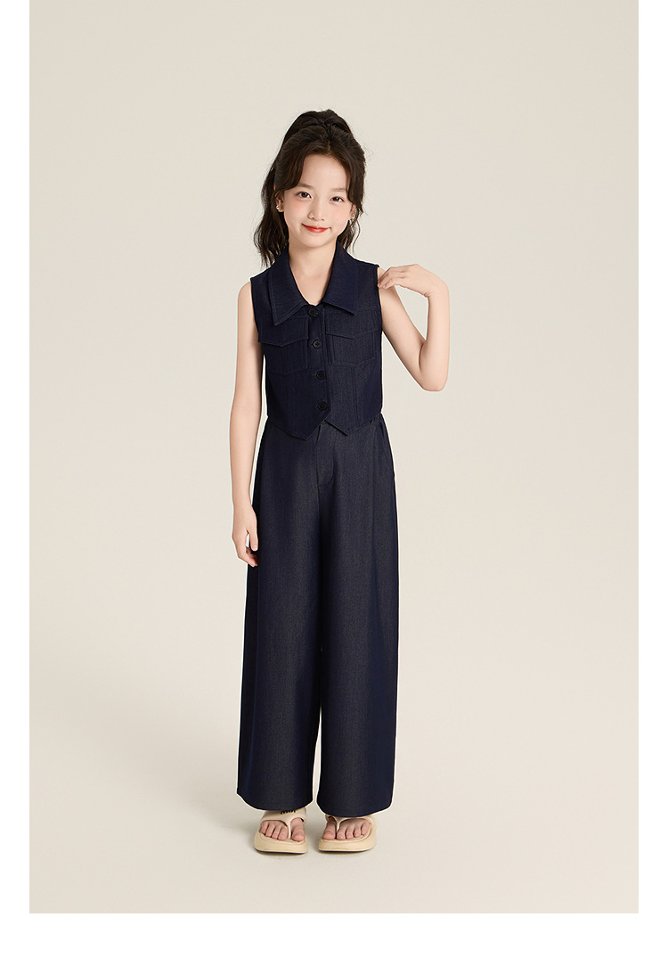 Amybaby 여아 정장 여름 2025 새로운 한국 스타일 디자인 트렌디 데님 조끼 와이드 팬츠스토어 가기