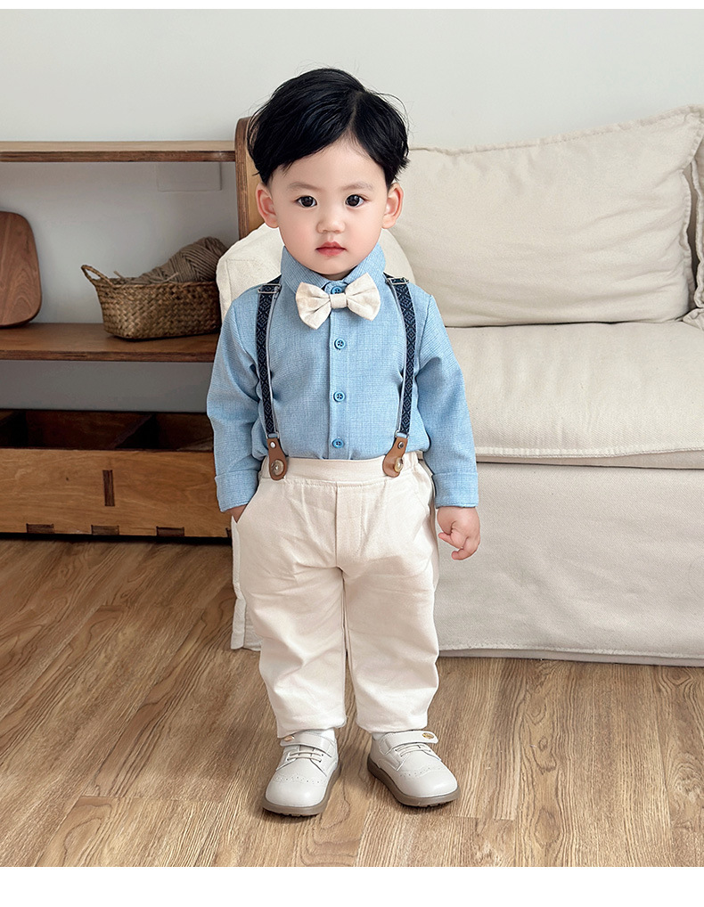 국경 간 아동 의류 아동 나비 넥타이 격자 무늬 셔츠 바지 투피스 세트 아기 봄, 가을 새로운 유럽과 미국 소년 정장스토어 가기